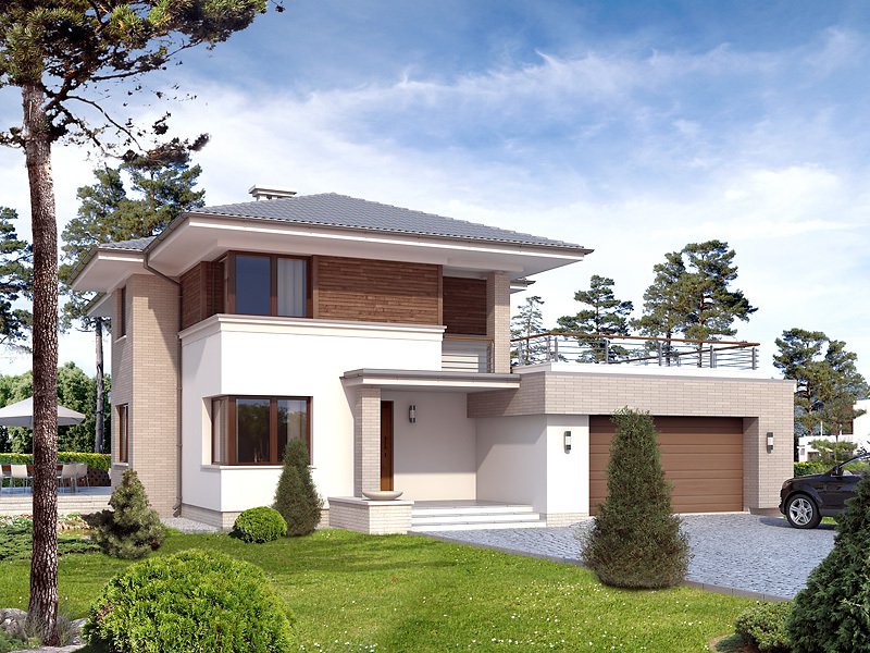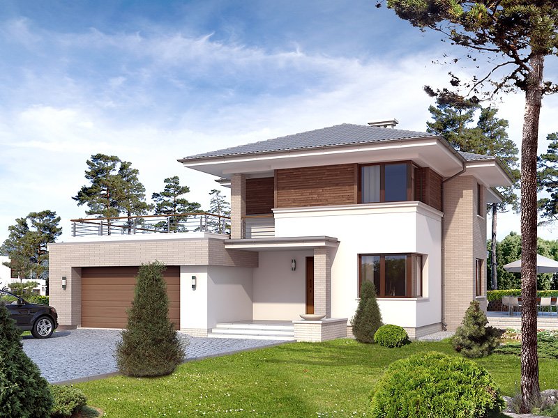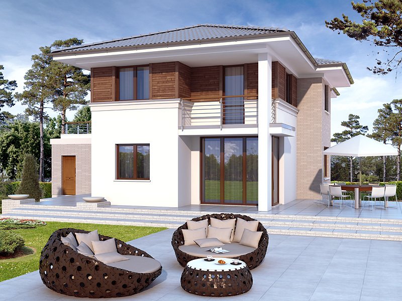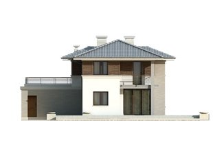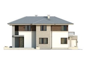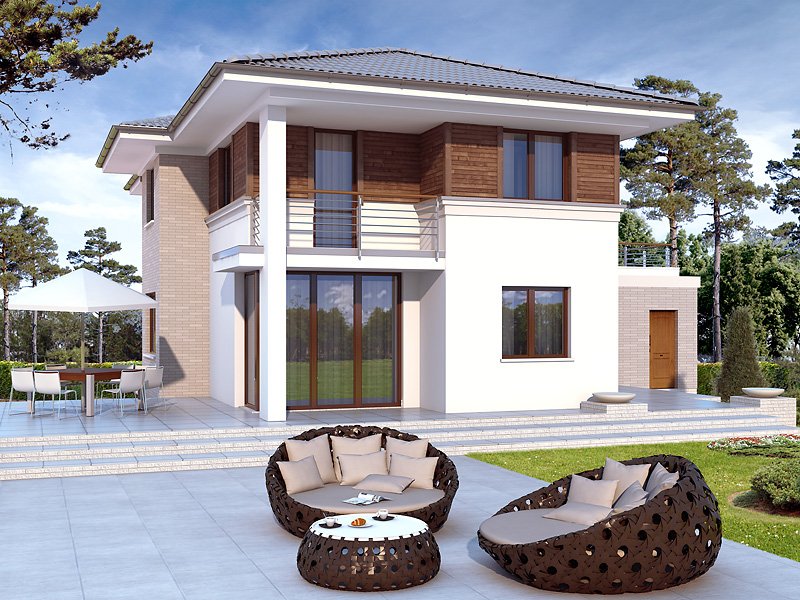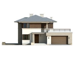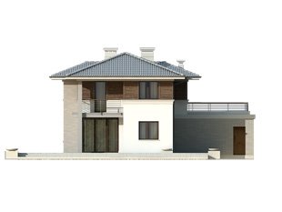 Budynek mieszkalny jednorodzinny w konstrukcji murowanej, wolno stojący, piętrowy, częściowo podpiwniczony. W piwnicy znajdują sie: kotłownia, pralnia oraz pom. gospodarcze. Na parterze zaprojektowano pokój dzienny połączony z kuchnią, gabinet, łazienkę, dwustanowiskowy garaż oraz pom. gospodarcze. Na piętrze zaprojektowano trzy sypialnie łazienkę oraz garderobę z wyjściem na taras. Bryła budynku przykryta wielospadowym dachem.