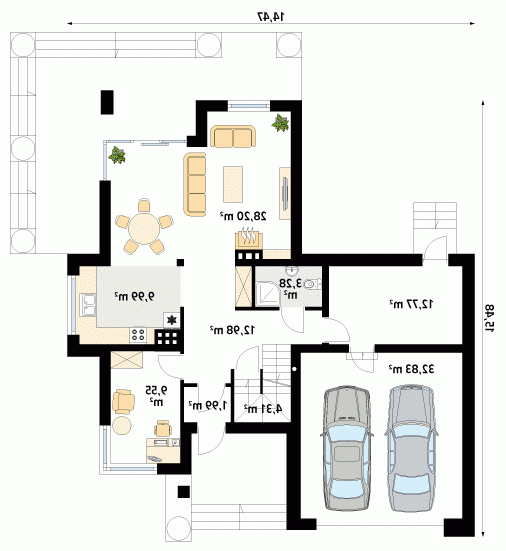 - Min. wymiary działki 21.47x24.48 m