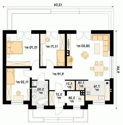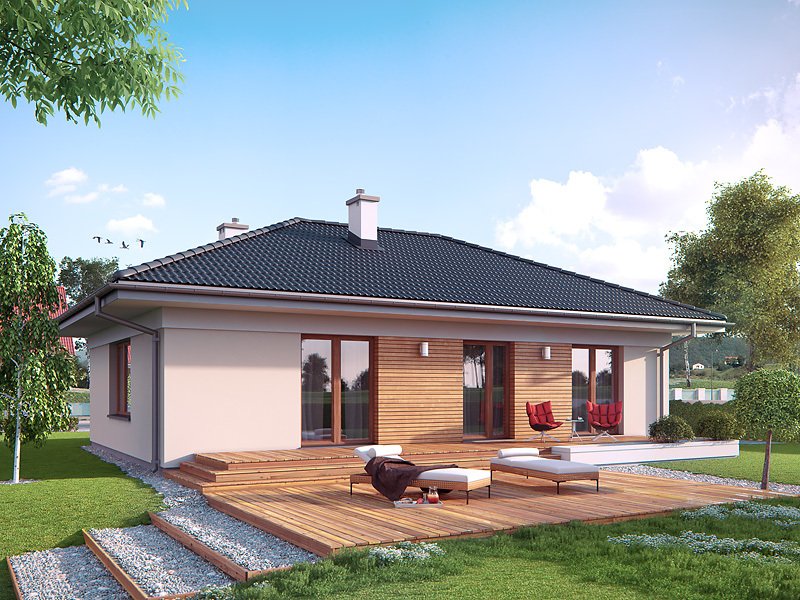 Projekt jest dedykowany zwolennikom funkcjonalnych, niewielkich ale efektownych domów. W domu zaprojektowano trzy sypialnie i jedną łazienkę. Kuchnia otwarta na część dzienną zapewni stały kontakt z resztą domowników podczas codziennych czynności. Atutem projektu jest spiżarnia i garderoba. Dom z pewnością spodoba się inwestorom gustującym w nowoczesnym stylu. Jest to projekt energooszczędny, zaprojektowany z myślą o osobach, które szczególną uwagę poświęcają kosztom eksploatacji i racjonalnego wykorzystywania energii.