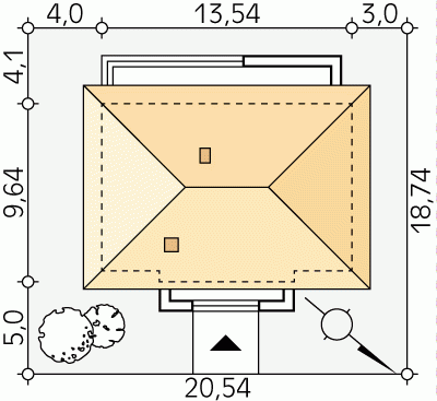 - Min. wymiary działki 20.54x18.74 m