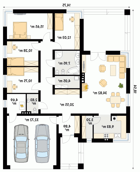 DECYMA to projekt nowoczesnego domu idealnego dla 4 - 5-osobowej rodziny. W bryle budynku zaprojektowano dwustanowiskowy garaż. W części dziennej dominuje otwarta przestrzeń salonu zaakcentowana dużą ilością przeszkleń oraz obszerny, reprezentacyjny hol. W części nocnej zaprojektowano cztery sypialnie oraz łazienkę. DECYMA jest projektem energooszczędnym. Atutem jest duży dwustanowiskowy garaż oraz spiżarnia usytuowana przy kuchni.