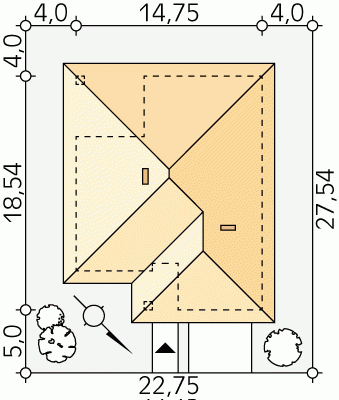 - Min. wymiary działki 22.75x27.54 m