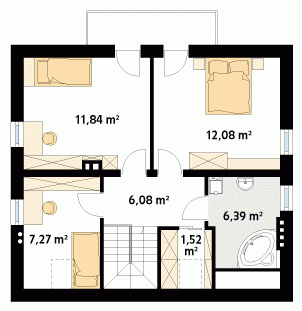 DROZD 2 to projekt domu jednorodzinnego z optymalnie wykorzystaną przestrzenią. Wyróżnia się stonowaną kolorystyką elewacji oraz prostą i nowoczesną bryłą. Na parterze znajduje się salon z jadalnią, kuchnia, miejsce na spiżarnię lub garderobę pod jednym z biegów klatki schodowej, dodatkowy pokój oraz duża kotłownia. Poddasze zawiera trzy sypialnie, dwie z nich mają wydzielone miejsce do pracy, obszerny taras, łazienka i garderoba. Projekt domu występuje również w wersji z garażem pod nazwą DROZD.