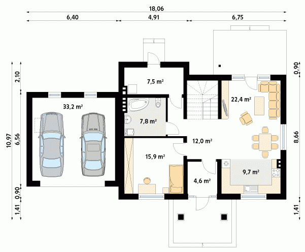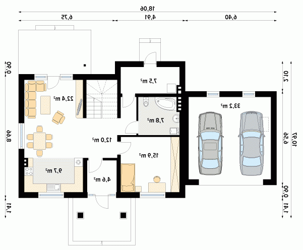 - Min. wymiary działki 25.06x19.97 m