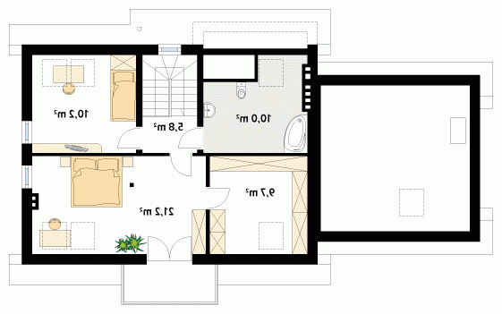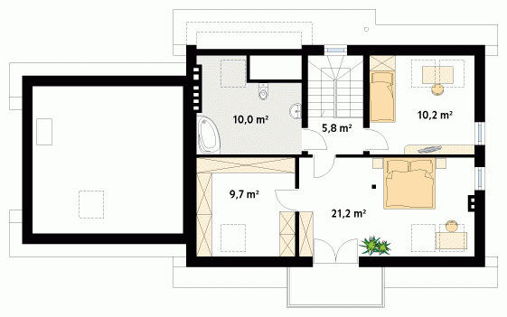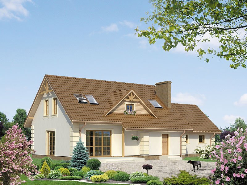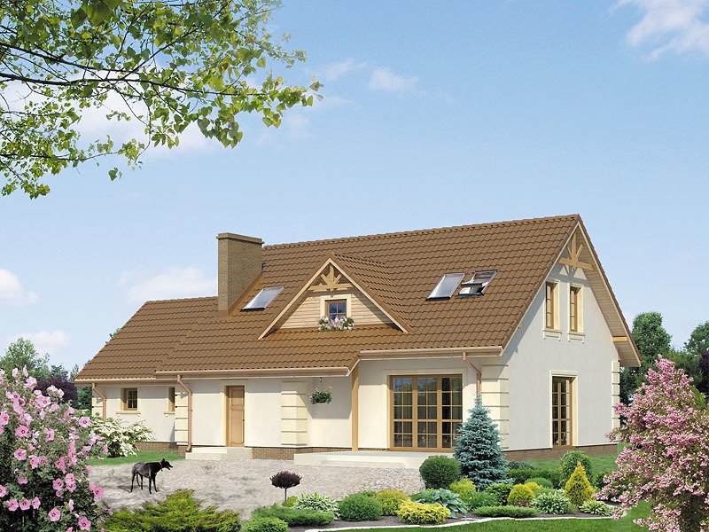 Dom jednorodzinny z użytkowym poddaszem i dwustanowiskowym garażem, który można dobudować później. Parter oprócz części dziennej posiada dodatkowy pokój z łazienką. Na poddaszu znajdują się trzy pokoje i łazienka.