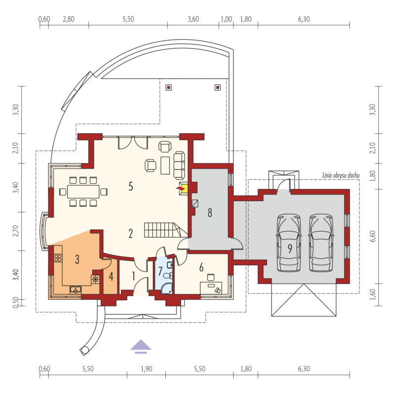 W projekcie zastosowano systemy zabudowy poddaszy, ścian działowych i sufitów podwieszanych Rigips.