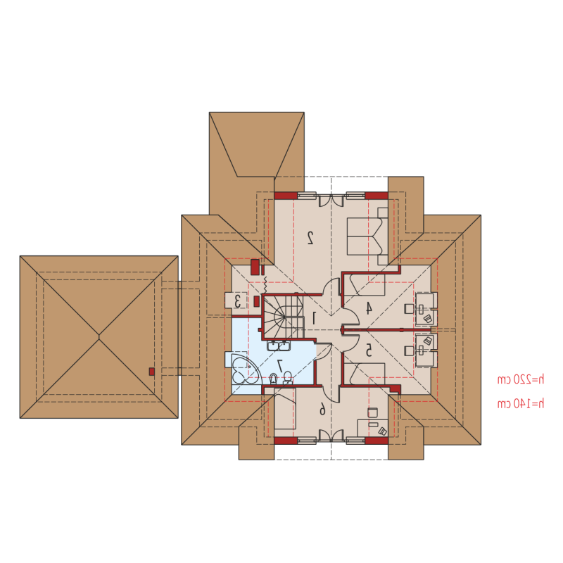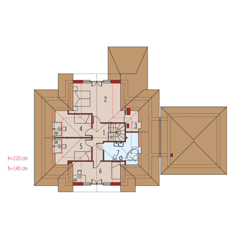 Dach: konstrukcja drewniana, ocieplenie wełna mineralna 25 cm, dachówka cementowa IBF