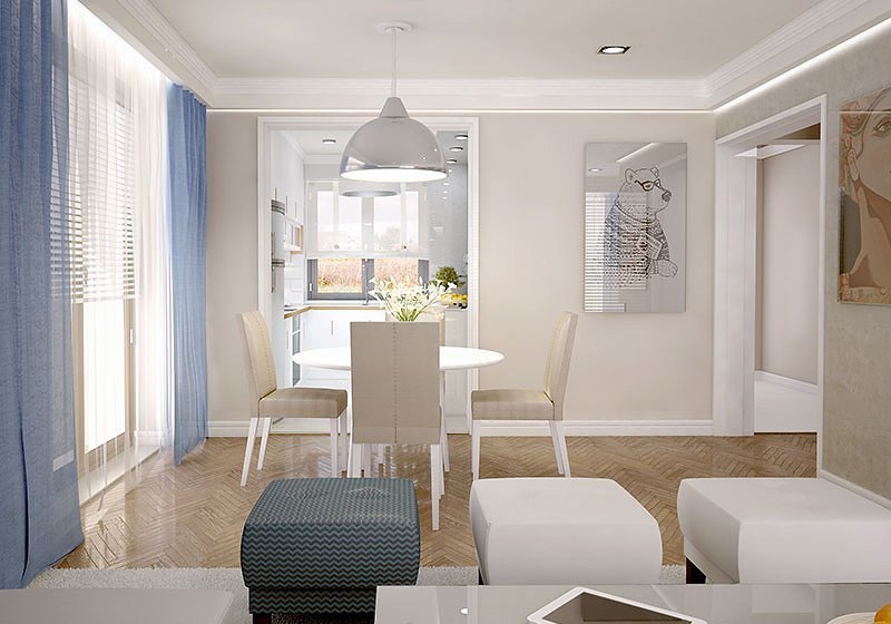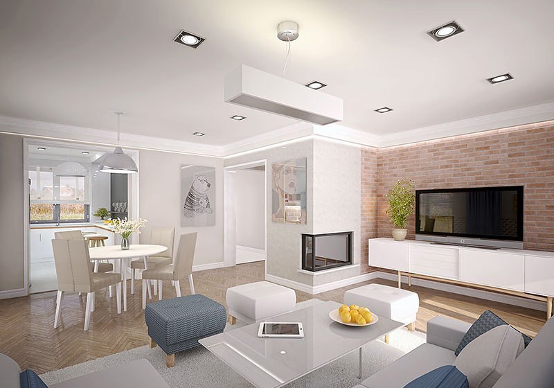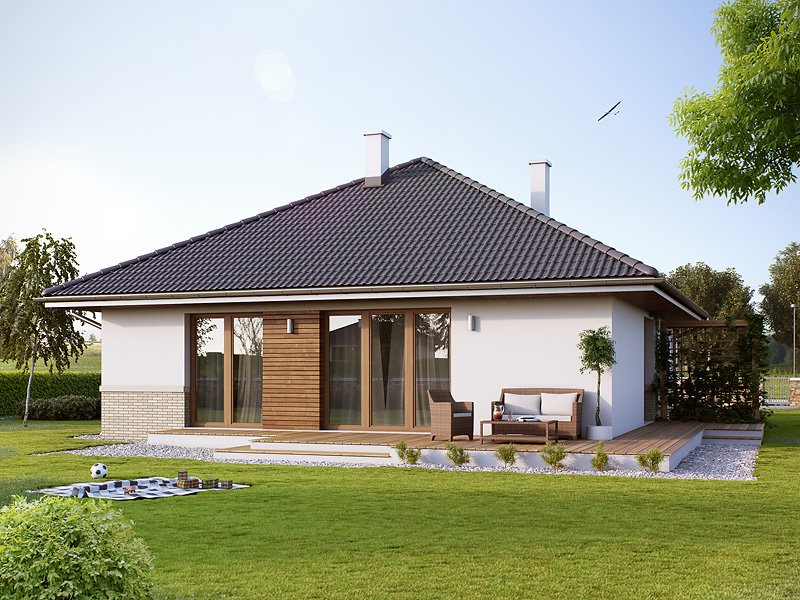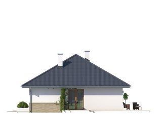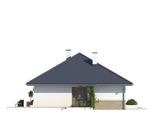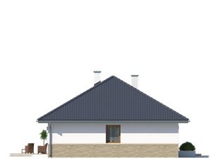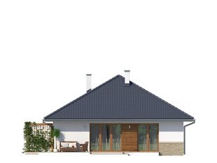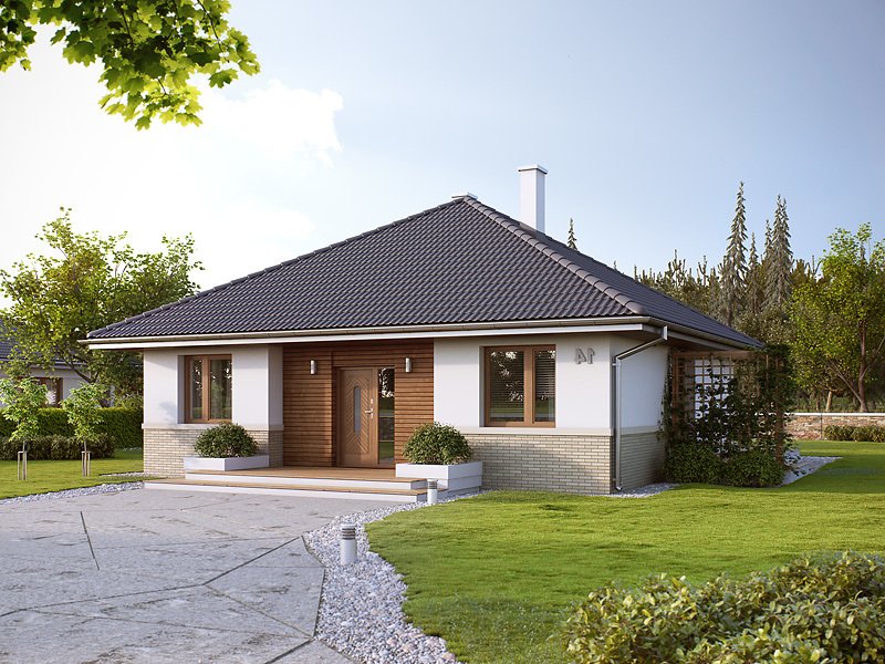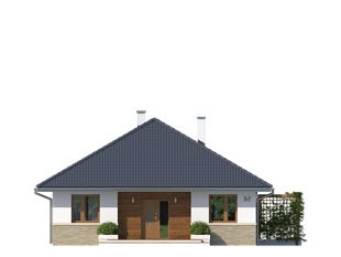 Niewielki, jednorodzinny dom parterowy, odpowiadający potrzebom 3 -4-osobowej rodziny. Optymalny układ pomieszczeń został podzielony na dwie strefy: dzienną - kuchnia i salon z jadalnią oraz nocną: dwie sypialnie i łazienka.