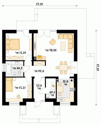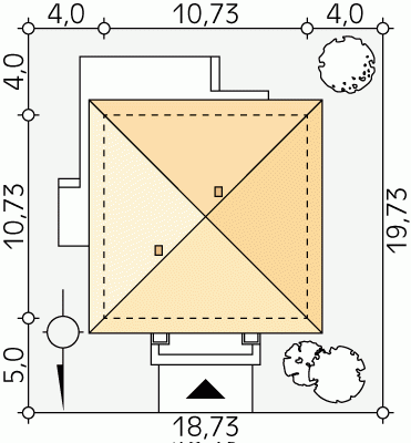 - Min. wymiary działki 18.73x19.73 m