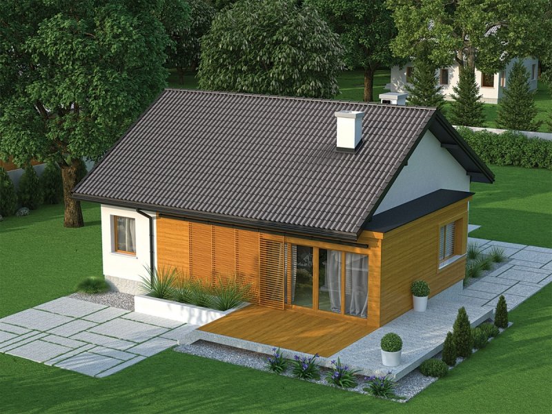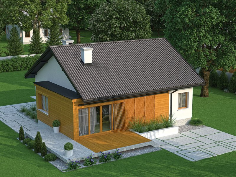 Elmo II to nowoczesny, oszczędny w formie dom, który koresponduje z duchem architektonicznego minimalizmu. Dwuspadowy dach, brak zbędnych detali i ascetyczna kompozycja elewacji spełnią oczekiwania inwestorów, którzy cenią surową urodę prostoty. We wnętrzu króluje wygoda i sprawdzone rozwiązania funkcjonalne. Serce domu tworzy komfortowy salon, który za pomocą tarasowego przeszklenia, subtelnie poszerza swą przestrzeń o strefę ogrodu. Elmo II harmonijnie wpisze się w każdy krajobraz, stając się jednocześnie jego atrakcyjną ozdobą, pełną przytulnego uroku.