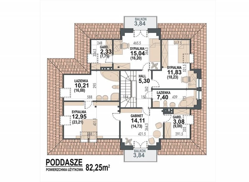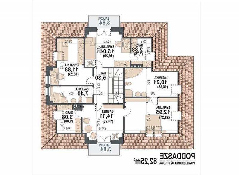 dach: wielospadowy z pokryciem z dachówki ceramicznej, cementowej l