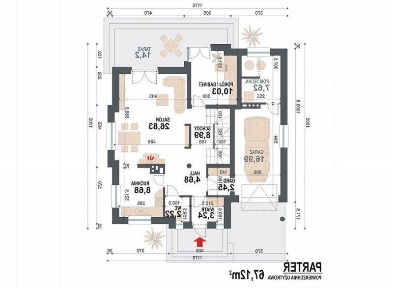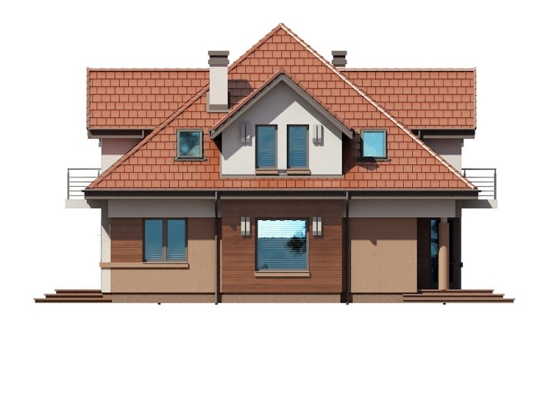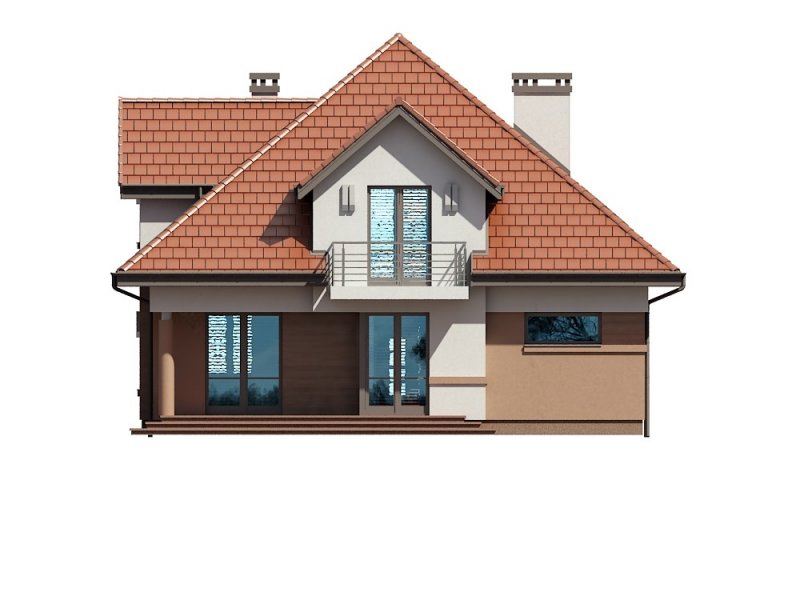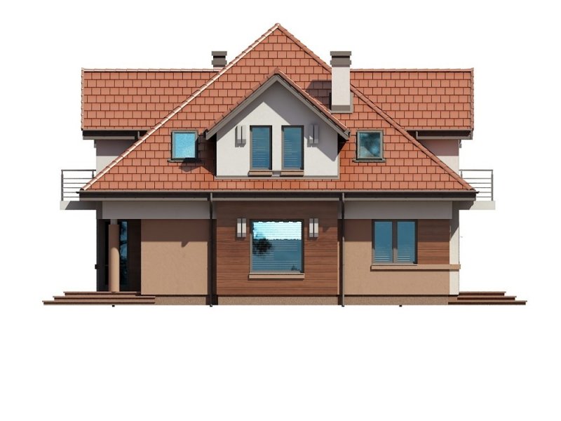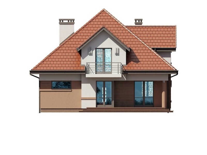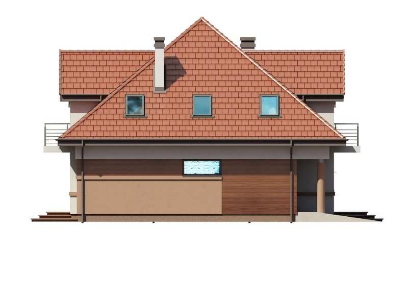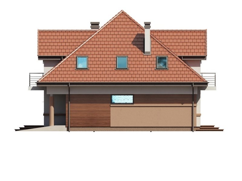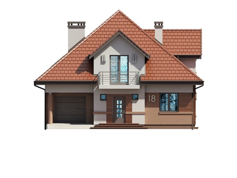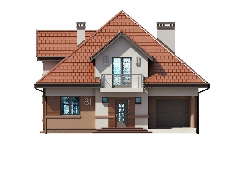 FAUN N to wersja domu FAUN przeznaczona dla osób preferujących bardziej nowoczesny charakter budynku. Dom ten to ciekawa propozycja projektu domu parterowego z użytkowym poddaszem przeznaczonego dla 4-6 osobowej rodziny. Budynek posiada reprezentacyjne wejście podkreślone lukarną z balkonem . Na parterze w strefie dziennej budynku poprzez otwarcie kuchni z aneksem jadalnym oraz klatki schodowej i hallu na salon uzyskano jedną wielką przestrzeń o przenikających się funkcjach użytkowych. Program parteru uzupełniają: pokój (gabinet), ogólnodostępne wc, garderoba oraz garaż z kotłownią (pomieszczeniem gospodarczym). Strefa nocna sytuowana na poddaszu użytkowym budynku składa się z 3 sypialni oraz ogólnodostępnej łazienki . Obszerna sypialnia rodziców posiada dodatkową łazienkę i garderobę, z którymi stanowi oddzielną, intymną strefę. Duży taras oraz dwa balkony na poddaszu przynależne do sypialni umożliwiają doskonały kontakt z przyrodą przydomową co jest szczególnie ważną zaletą dla miłośników mieszkania w otoczeniu natury. Istnieje także większa wersja domu z garażem dwustanowiskowym o nazwie FAUN N 2G.