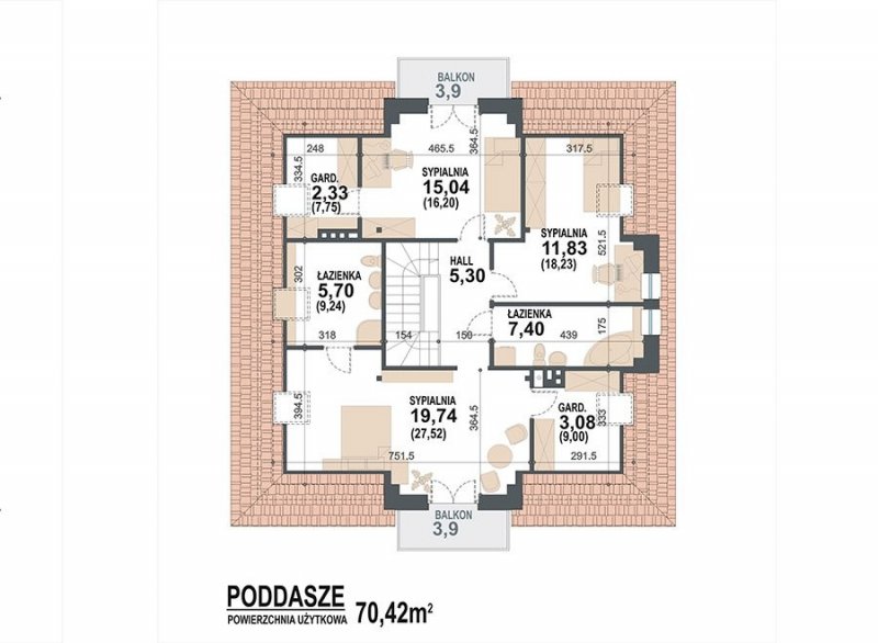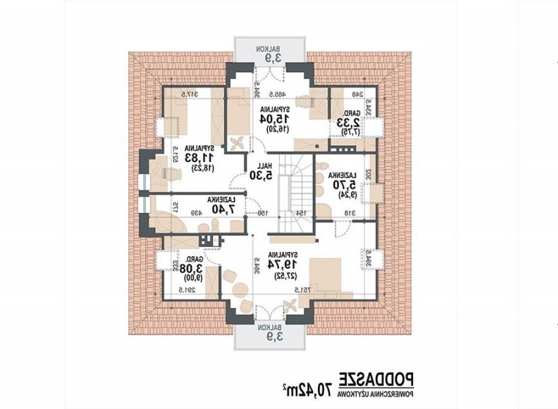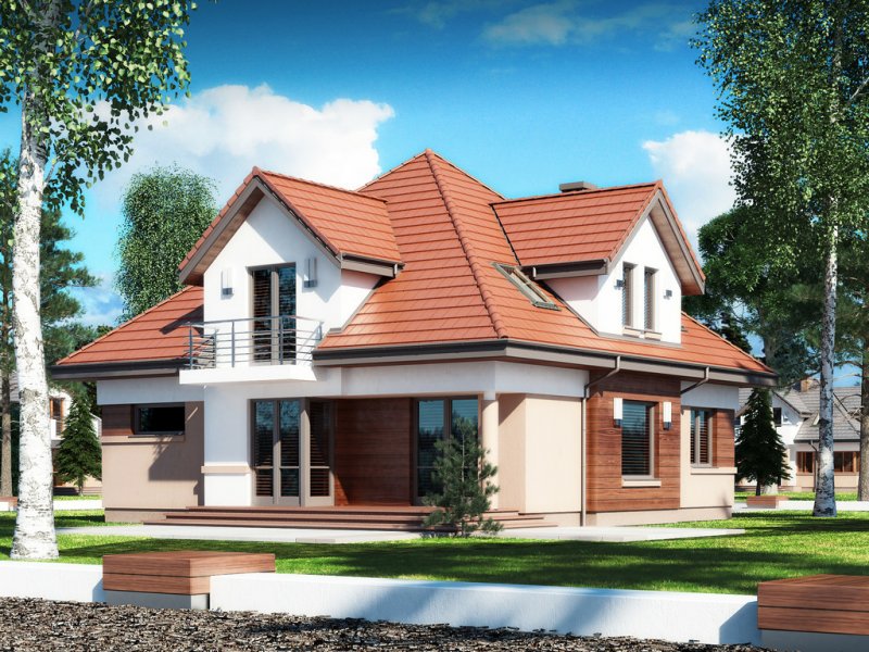 dach: czterospadowy o konstrukcji drewnianej z pokryciem z dachówki ceramicznej, cementowej lub blachodachówki
