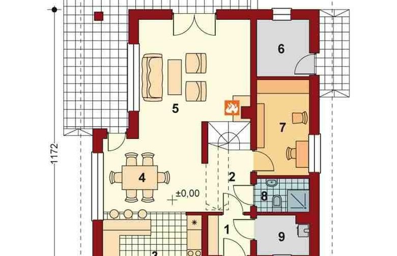 Dom został zaprojektowany z naciskiem na funkcjonalność, prostotę rozwiązań i konstrukcji oraz zastosowanie rozwiązań energooszczędnych. Dom łatwy w realizacji.