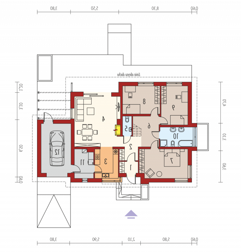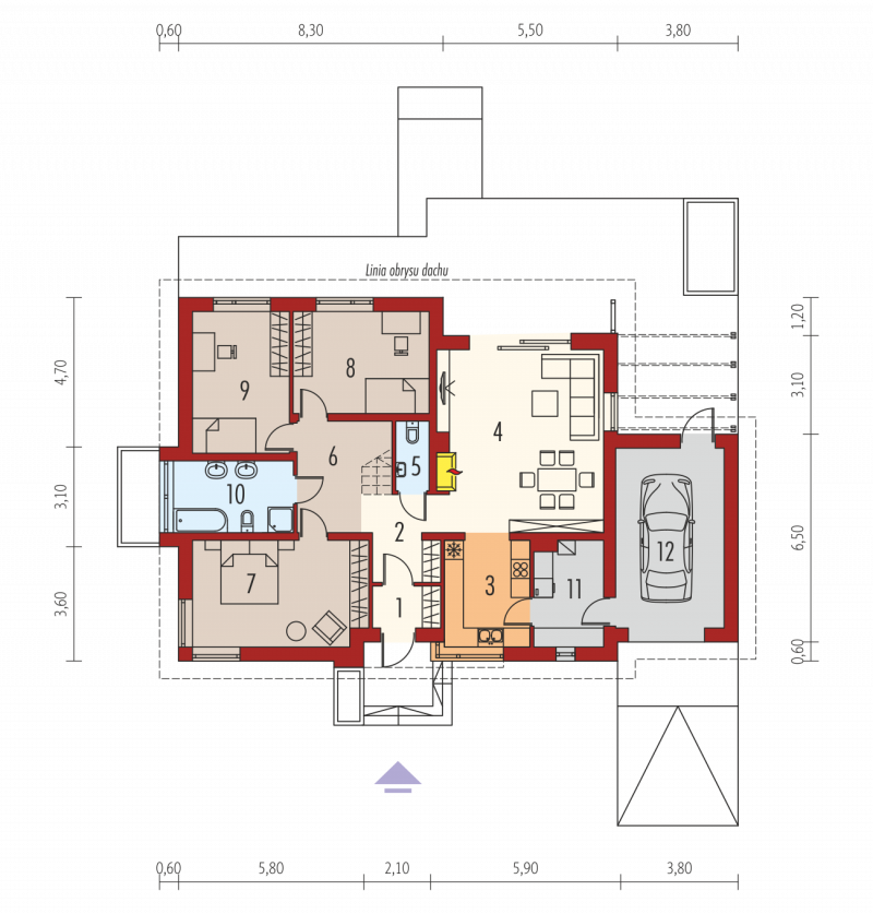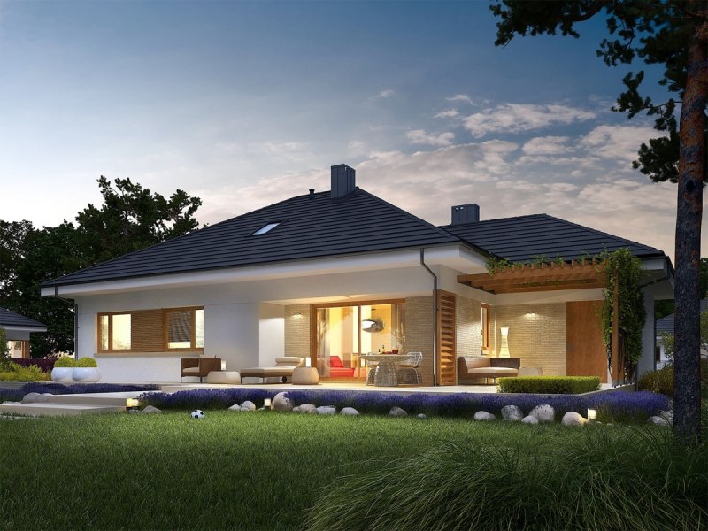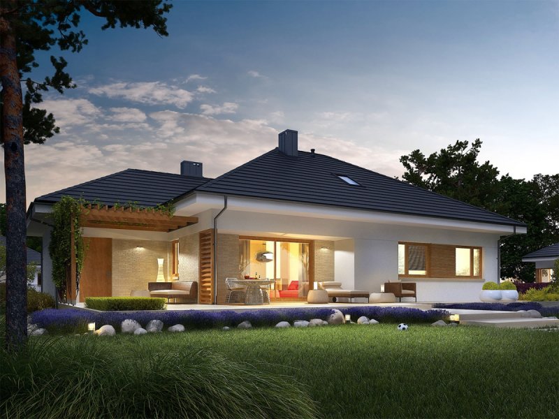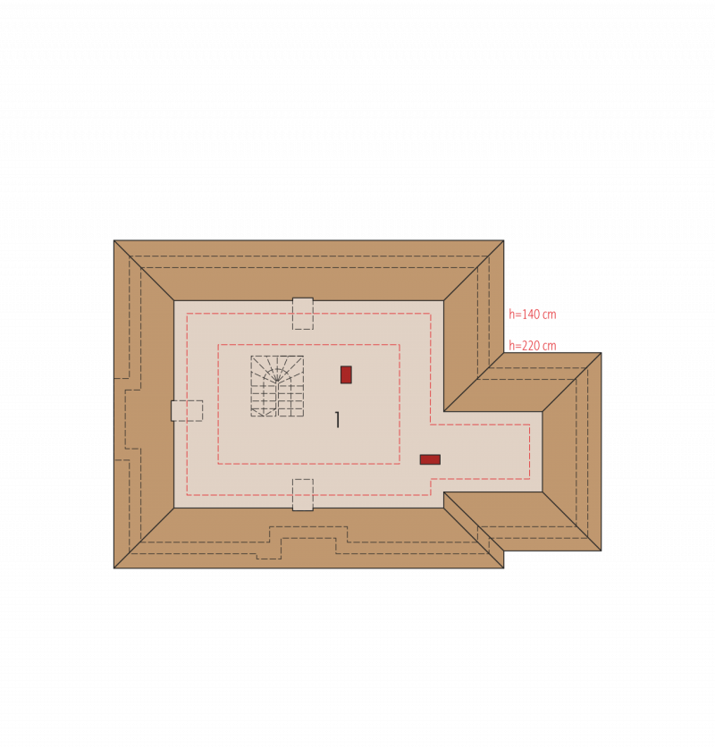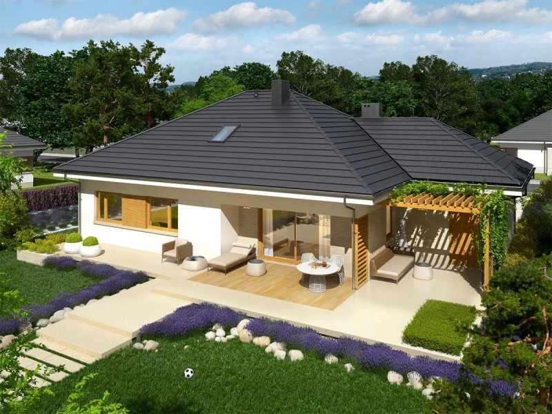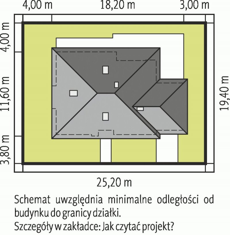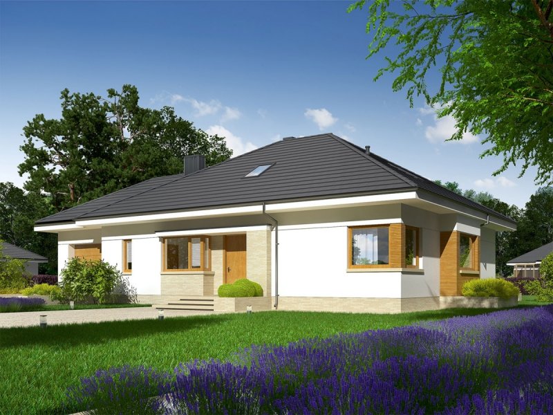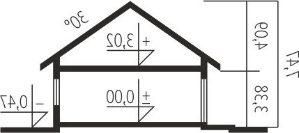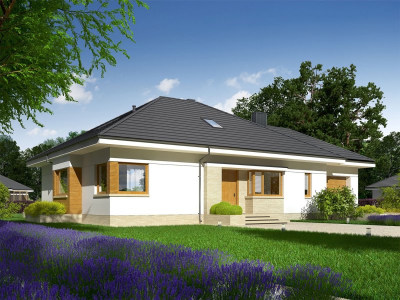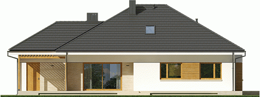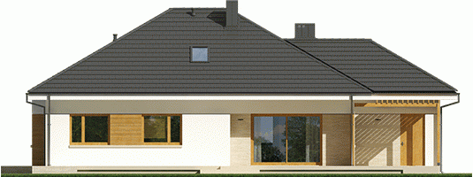 Dach: konstrukcja drewniana, dachówka płaska lub inna o podobnych parametrach, w przypadku wykorzystania poddasza jako mieszkalne - ocieplenie dachu: wełna mineralna 30 cm, więźba dachowa dostępna również w systemie prefabrykacji drewnianej