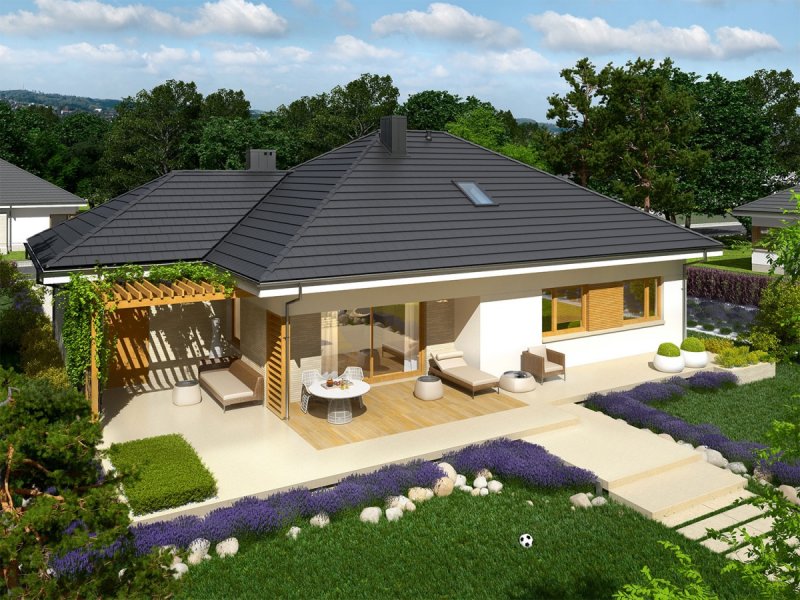 Flo III G1 to dom, w którym nowoczesna elegancja spotyka się z funkcjonalną wygodą i przytulną aurą. Dużym atutem projektu jest znakomite doświetlenie wszystkich pomieszczeń oraz kapitalny taras, stanowiący idealne dopełnienie strefy wypoczynkowej.