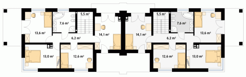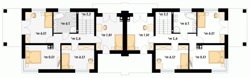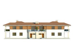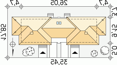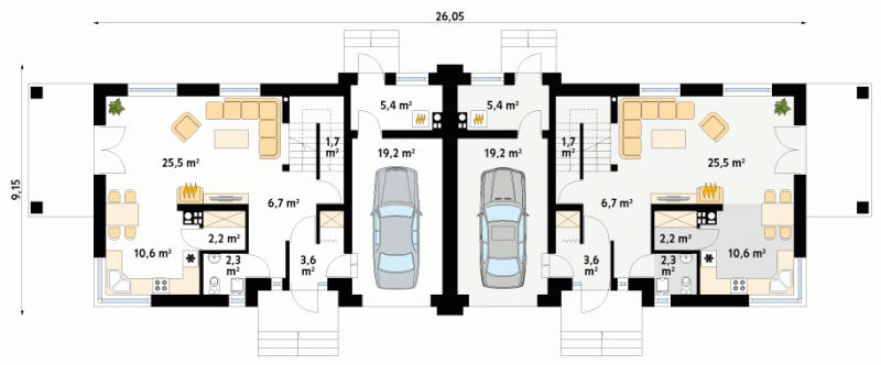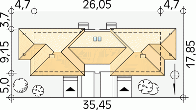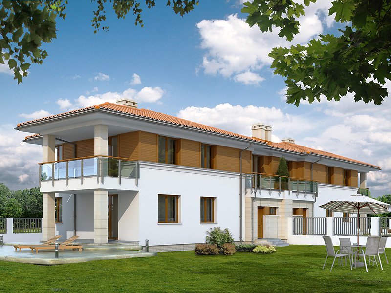 Dom w zabudowie bliźniaczej, piętrowy, dostosowany do potrzeb 4 – 5-osobowej rodziny. Ciekawa, nowoczesna architektura. Prosta, nieskomplikowana bryła. Wyraźny podział na część dzienną, nocną i gospodarczą.