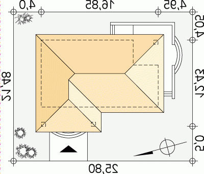 Ściany: 2-warstwowe - pustak ceramiczny + styropian, Stropy: żelbetowe, wylewane, Dach: dachówka ceramiczna, kąt nachylenia 30°