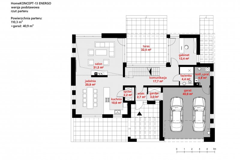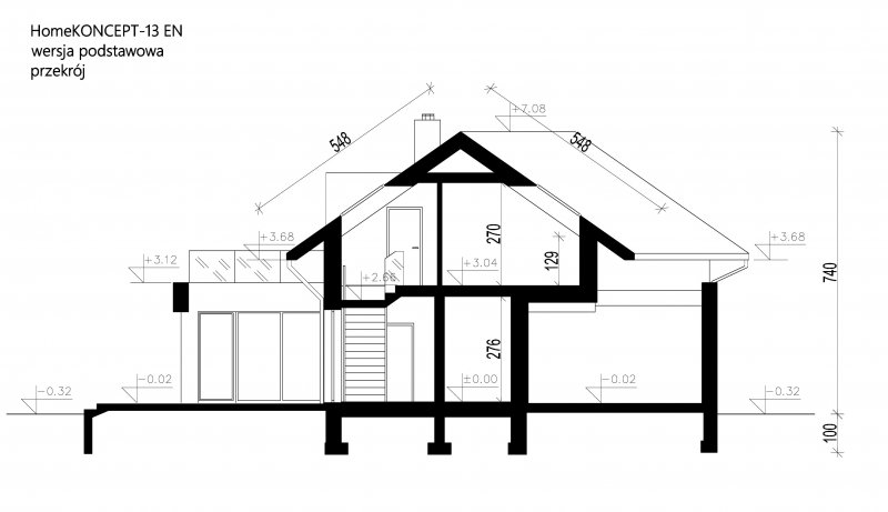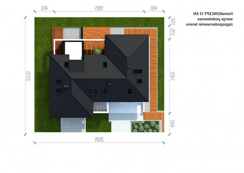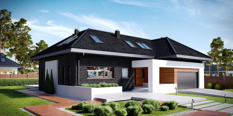 HomeKoncept 13 to dom dla prawdziwych koneserów nowoczesności. Projekt ten charakteryzuje nietypowa bryła w kształcie litery C oraz oryginalna elewacja. Dom ma dużo unikatowych rozwiązań, m.in.: posiada antresolę, w której znajduje się sypialnia z przeszkleniem na salon oraz jednobiegowe schody wzdłuż przeszklonego holu.