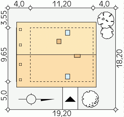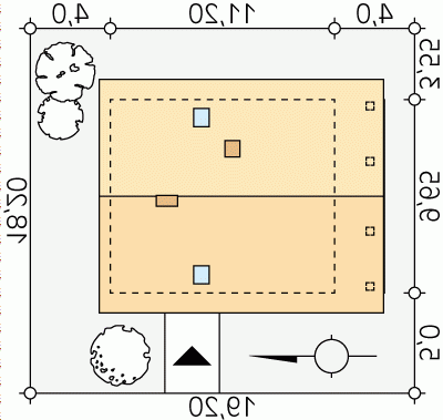 - Min. wymiary działki 19.20x18.20 m