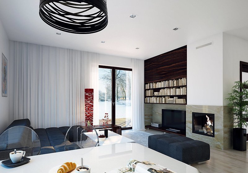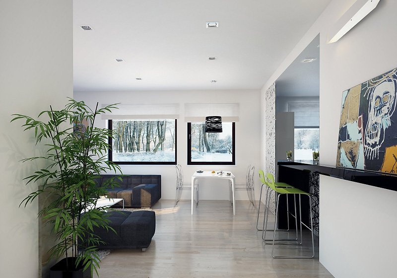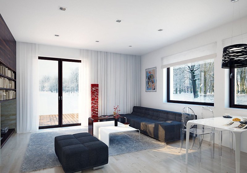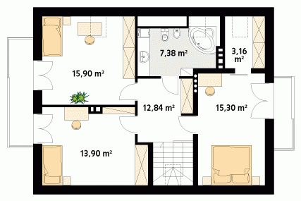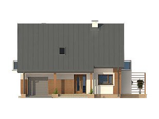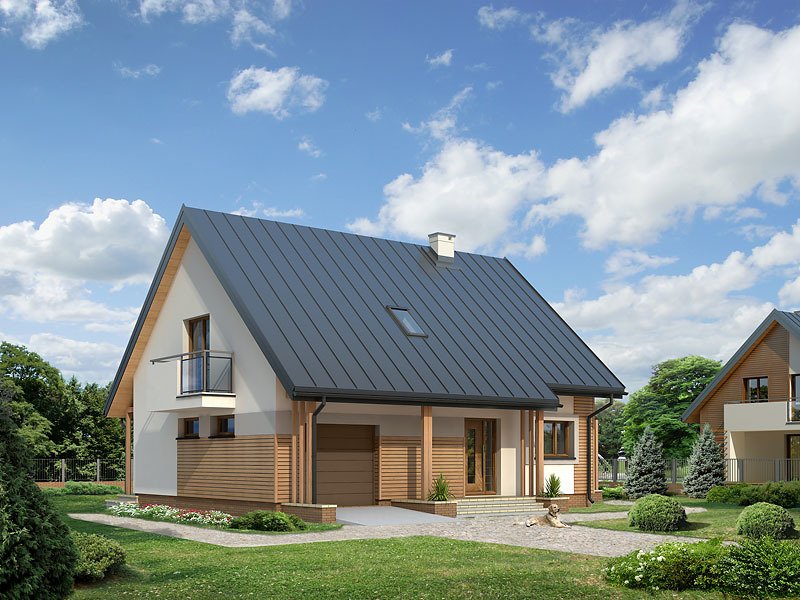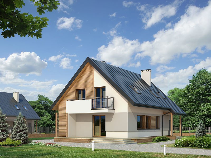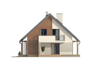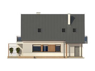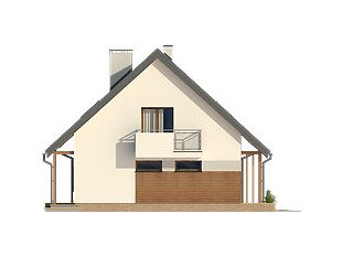 Niewielki ale wygodny dom dla 4 – 5-osobowej rodziny. Zlokalizowana na parterze część dzienna mieści w sobie przestronny pokój dzienny, jadalnię, kuchnię ze spiżarnią i gabinet, dodatkowo są tu: łazienka, duża kotłownia i jednostanowiskowy garaż. Na poddaszu znajdują się trzy obszerne sypialnie z wyjściami na dwa balkony, łazienka i garderoba. Prosta bryła z dwuspadowym dachem czyni dom łatwym w realizacji i tanim w użytkowaniu.