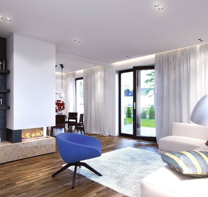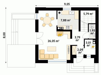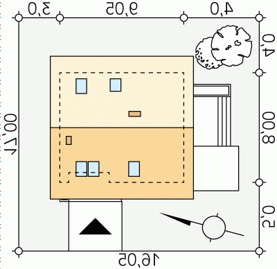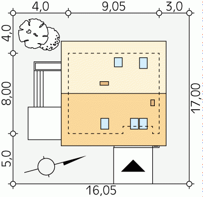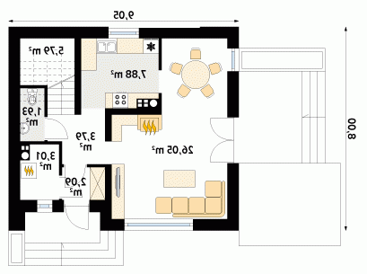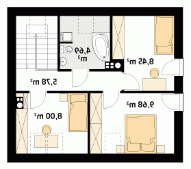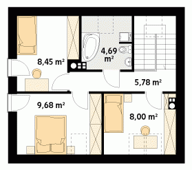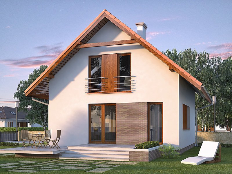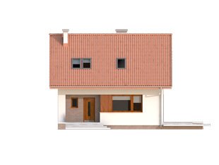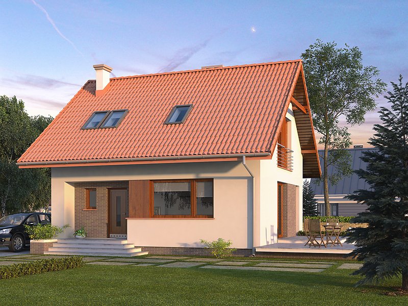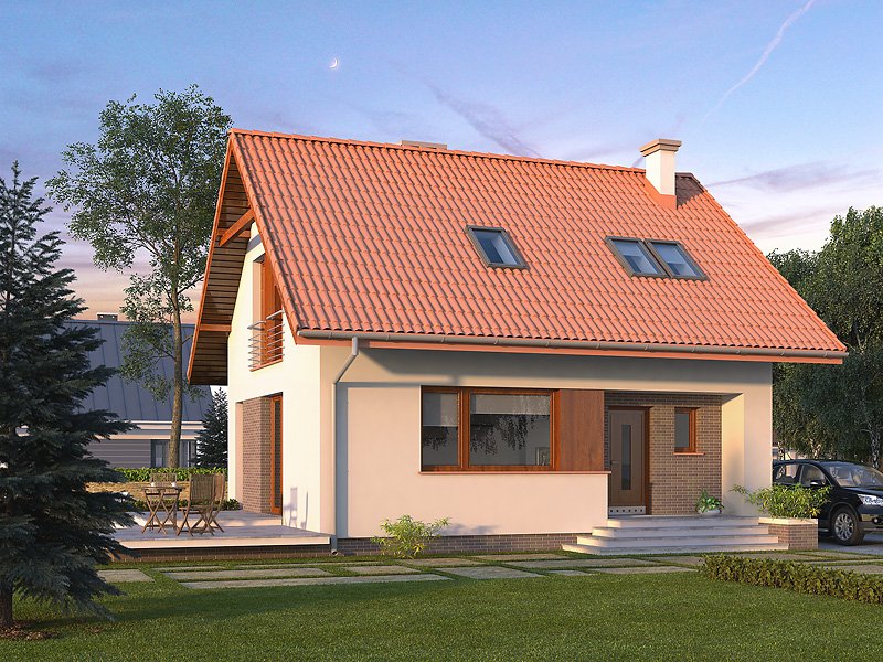 Niewielki jednorodzinny budynek mieszkalny, parterowy z użytkowym poddaszem. Optymalny program zapewnia komfort 4-osobowej rodzinie. Część reprezentacyjna domu to salon usytuowany od strony wejścia oraz jadalnia i kuchnia. Na poddaszu zaprojektowano trzy sypialnie oraz łazienkę.