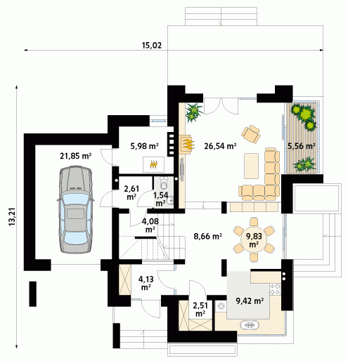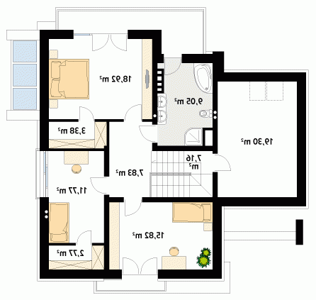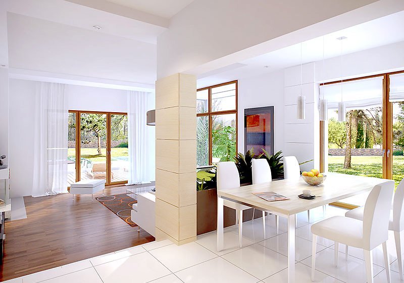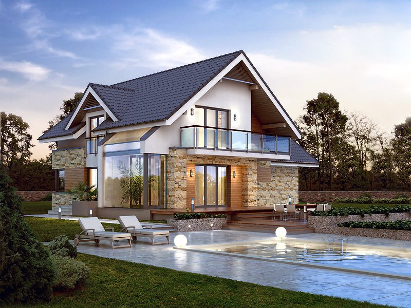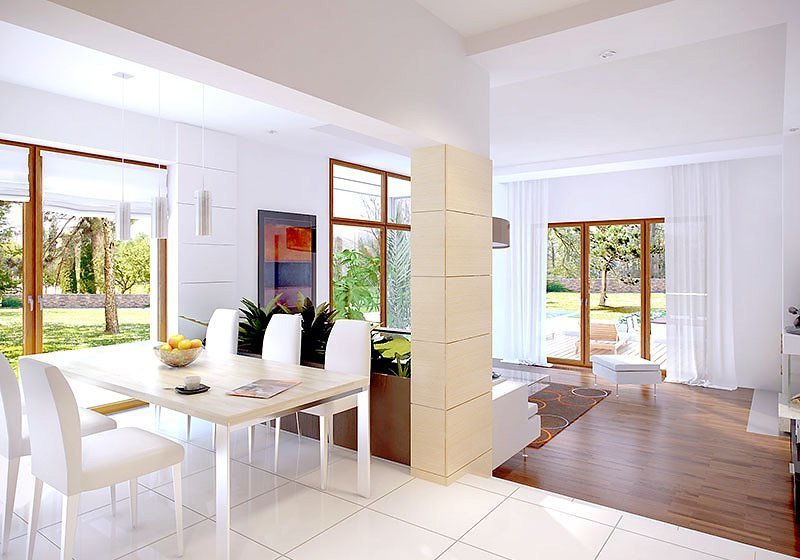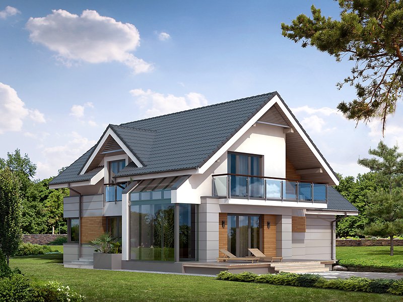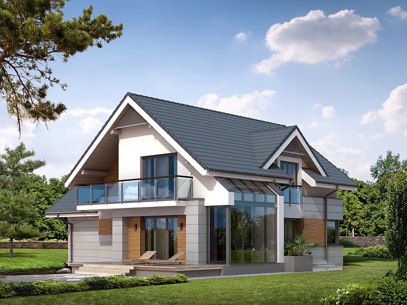 Projekt Jaspis to wzór nowoczesnego, jednorodzinnego domu projektowanego według standardów przyjętych w domach energooszczędnych. Poddasze to strefa sypialniana z trzema pokojami, łazienką i garderobą. Dzięki dużej ilości okien sięgających po sam sufit w salonie możemy się cieszyć sporą ilością naturalnego światła. Miłośnicy egzotycznych roślin również znajdą kąt dla siebie, bowiem przy salonie została umieszczona niewielka oranżeria. Do walorów domu można dodać również jednostanowiskowy garaż, który łączy się z pomieszczeniem gospodarczym.