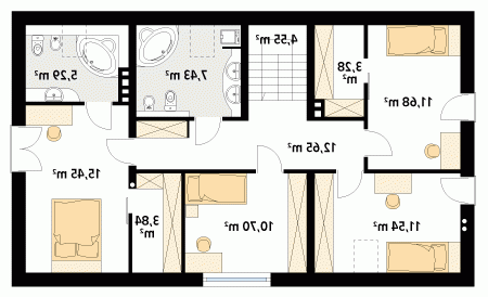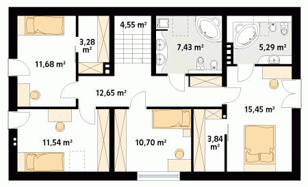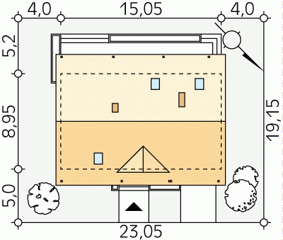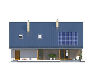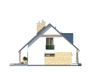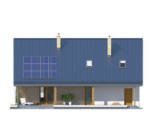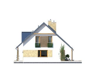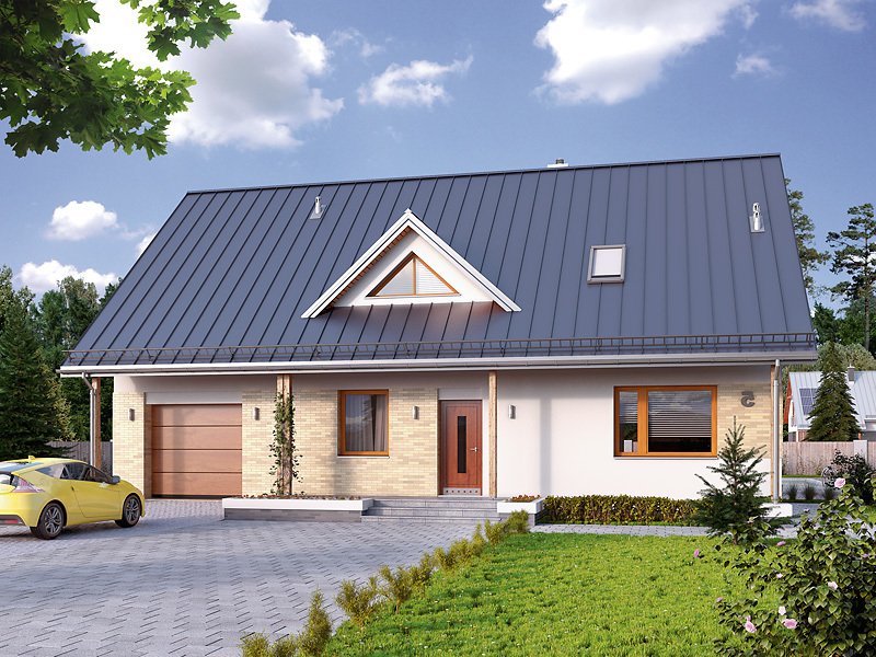 Dom jednorodzinny, wolno stojący, niepodpiwniczony z użytkowym poddaszem, przeznaczony dla 6 - 7-osobowej rodziny. Na parterze zaprojektowano przestronny pokój dzienny z jadalnią i kominkiem oraz kuchnię ze spiżarnią. Dwa dodatkowe pokoje na parterze mogą pełnić funkcję gabinetów lub sypialni. Na poddaszu znajdują się cztery sypialnie. Największa wyposażona jest w osobną łazienkę i garderobę. Sypialnie są wygodne, mają przewidziane miejsca na wbudowane szafy. Dom jest funkcjonalny, posiada prostą bryłę przekrytą dwuspadowym dachem, jedno miejsce garażowe i częściowo zadaszony taras.