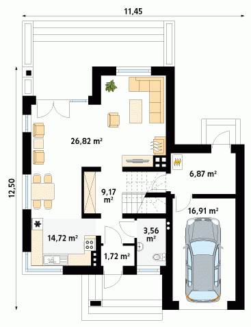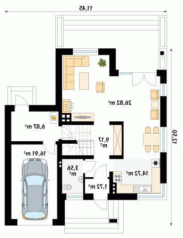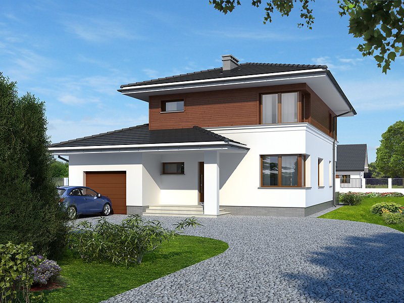 Dom jednorodzinny, dwukondygnacyjny, niepodpiwniczony. Na parterze kuchnia z jadalnią, pokój dzienny z kominkiem. Na poddaszu wygodna łazienka i trzy sypialnie. Garaż połączony z parterem pośrednio przez kotłownię. Dom zaprojektowany w technologii Multi-Comfort z zastosowaniem produktów marki Saint-Gobain łączy unikalne właściwości produktów z rozsądną ceną. Standard Multi-Comfort oznacza szereg korzyści, takich jak: niskie koszty ogrzewania, komfort termiczny, akustyczny, dobra jakość powierza, bezpieczeństwo przeciwpożarowe (klasa A1). Wszystko to jest możliwe za sprawą zastosowanych w projekcie sprawdzonych materiałów znanych i cenionych marek: Isover, Weber, Rigips, Glassolutions. Produkty Grupy Saint-Gobain są wytwarzane z naturalnych materiałów i posiadają deklaracje środowiskowe. W procesie eksploatacji budynki zaprojektowane w technologii Multi-Comfort posiadają niewielkie zapotrzebowanie na energię pierwotną. Więcej informacji o domach w standardzie Multi-Comfort: www.multi-comfort.pl