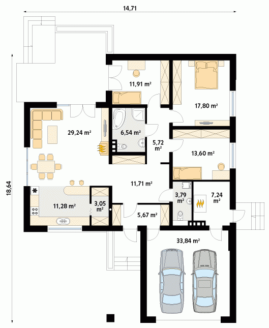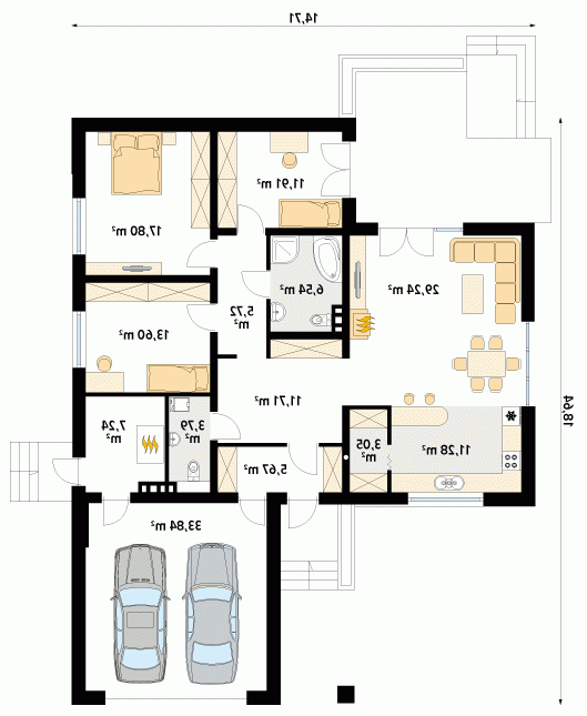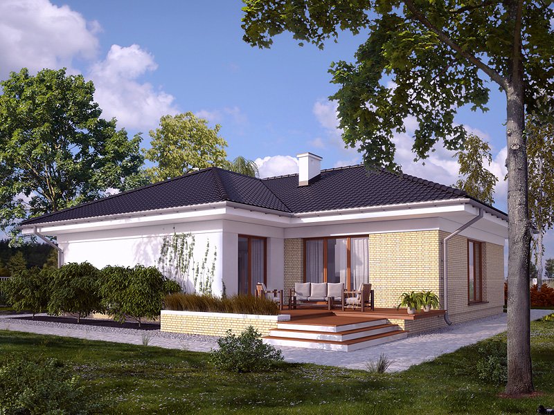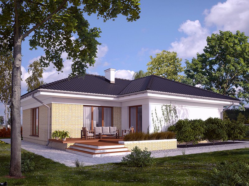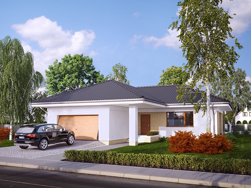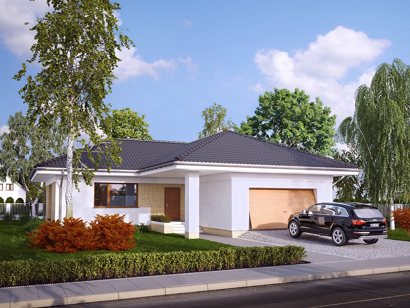 Parterowy budynek mieszkalny, jednorodzinny przeznaczony dla 4-osobowej rodziny. W budynku przewidziano wyraźny podział na część dzienną, nocną i gospodarczą. Część dzienna to otwarta przestrzeń łącząca salon, jadalnię oraz kuchnię ze spiżarnią. W części nocnej – prywatnej – przewidziano trzy sypialnie i łazienkę. Atutem projektu jest dość duża kotłownia, gdzie można wstawić kocioł na każdy rodzaj paliwa.