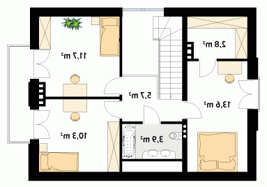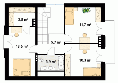 Mały dom jednorodzinny o prostej bryle i nowoczesnym charakterze. Przeznaczony dla 3 – 4-osobowej rodziny. Przestronne wnętrze z antresolą i przeszkleniem od strony ogrodu czyni go bardzo atrakcyjnym i funkcjonalnym.