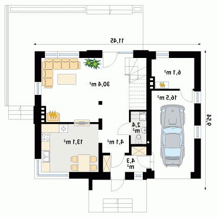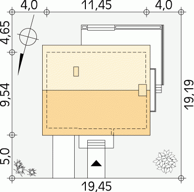 - Min. wymiary działki 19.45x19.19 m