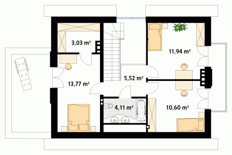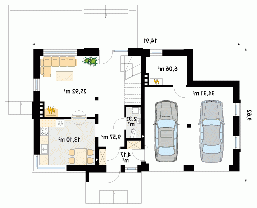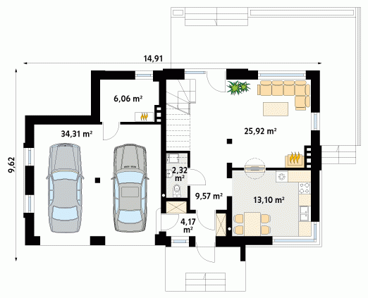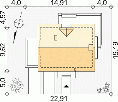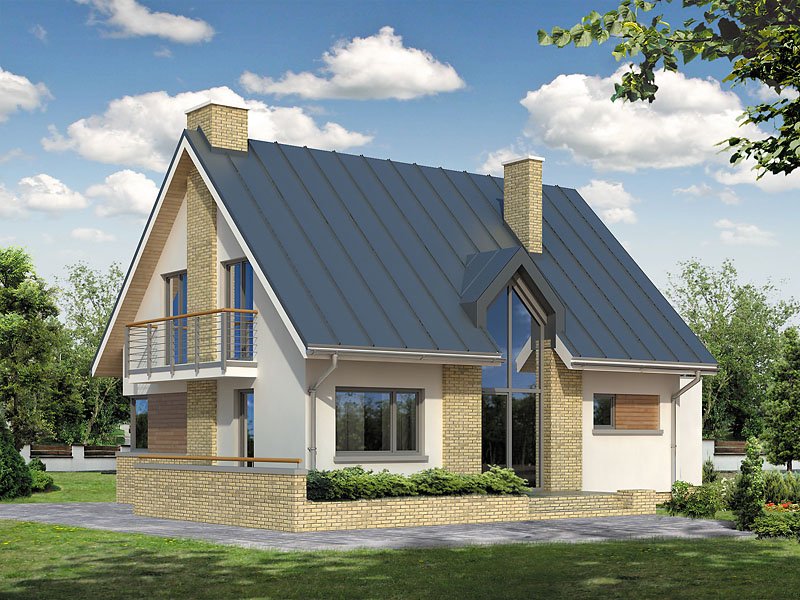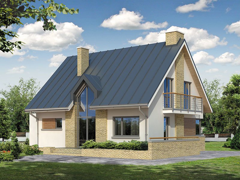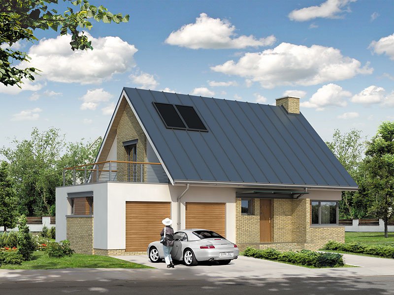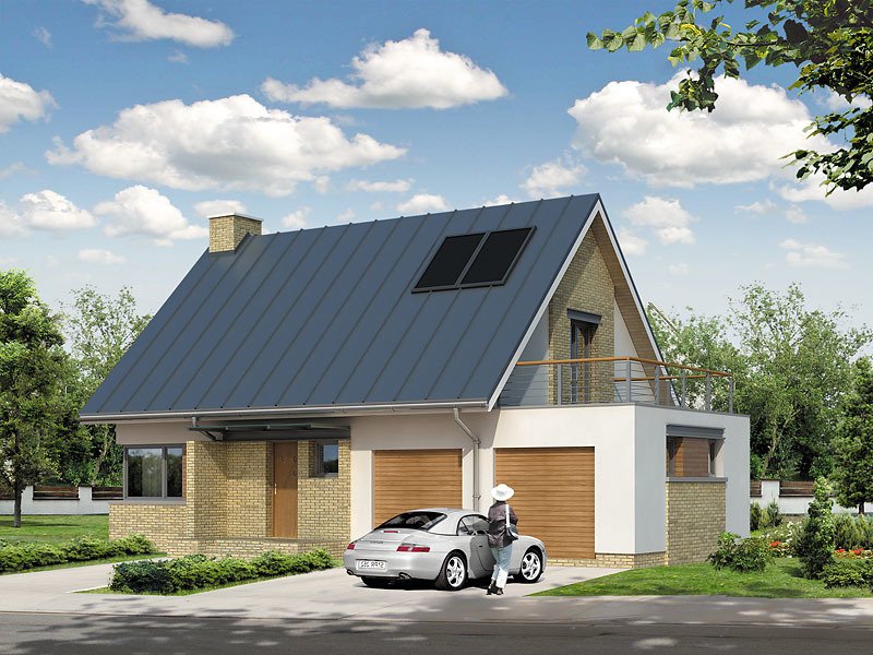 Mały dom jednorodzinny o prostej bryle i współczesnym charakterze. Przeznaczony dla 4 – 5-osobowej rodziny. Przestronne wnętrze z antresolą i przeszkleniem od strony ogrodu czyni go bardzo atrakcyjnym i funkcjonalnym. Dwustanowiskowy garaż. Taras nad garażem.