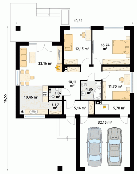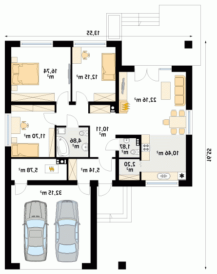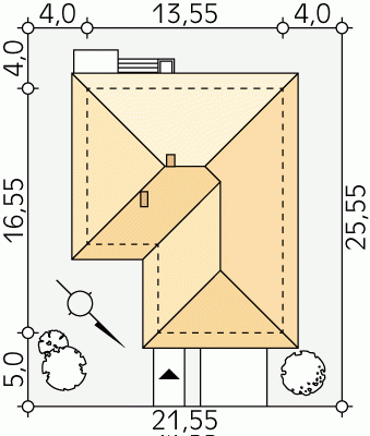 - Min. wymiary działki 21.55x25.55 m
