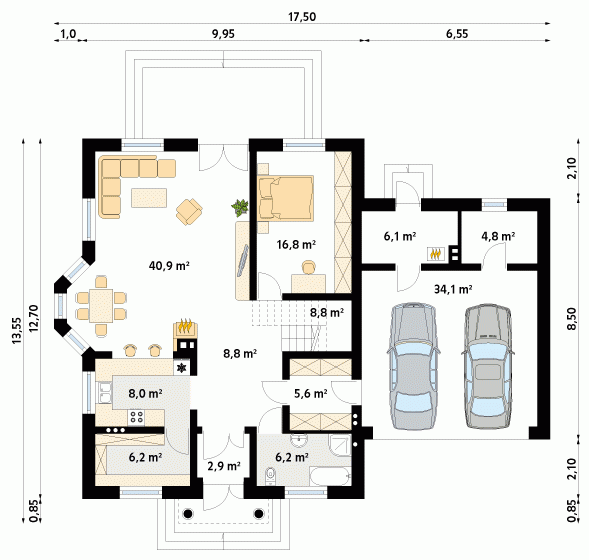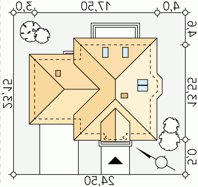 - Min. wymiary działki 24.50x23.15 m