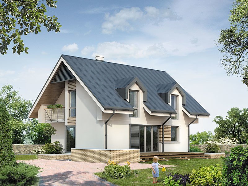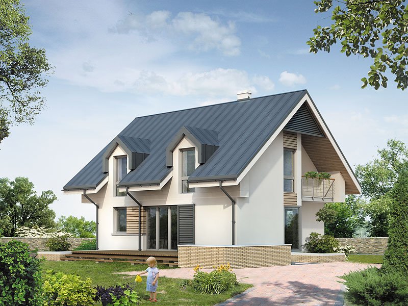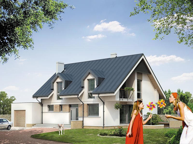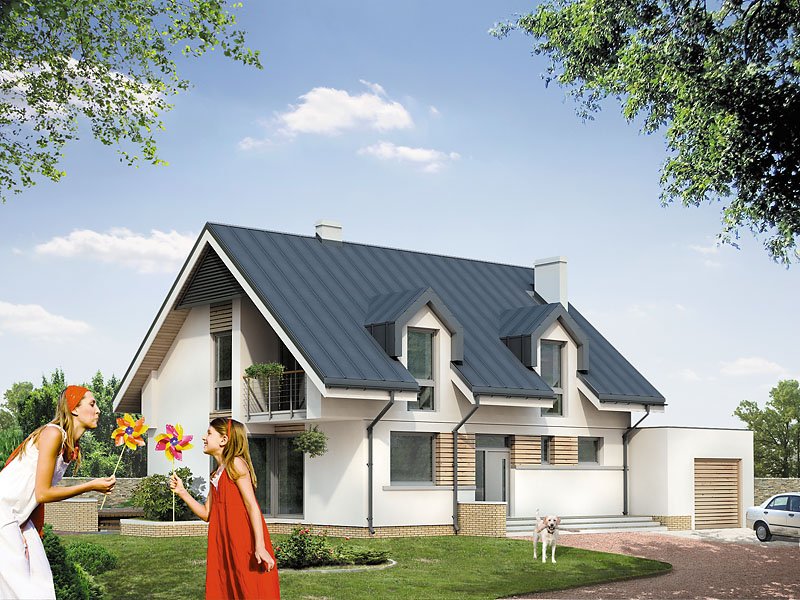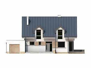 Dom mieszkalny przeznaczony dla 3 – 4-osobowej rodziny. Nowoczesne elementy domu podkreślają jego oryginalność i nadają tej prostej bryle niepowtarzalny charakter. Istnieje możliwość wybudowania domu bez garażu lub powiększenie garażu do dwóch stanowisk.