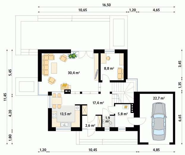 - Powierzchnia zabudowy 136.50 m²