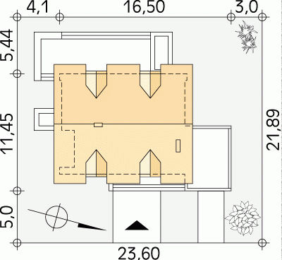 - Min. wymiary działki 23.60x21.89 m