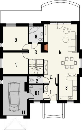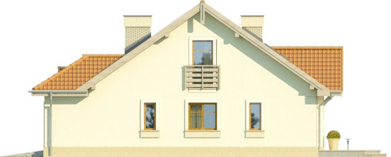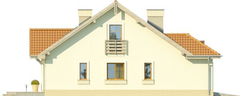 Materiały wybraliśmy popularne i pasujące do tradycyjnej technologii budowy prostego, murowanego domu z drewnianą więźbą. Ściany są zaprojekowane z gazobetonu i docieplone styropianem. Fasady są w całości otynkowane, razem z opaskami wokół okien. Projekt dostępny jest także w wersji lustrzanej oraz z darmową zgodą na zmiany.