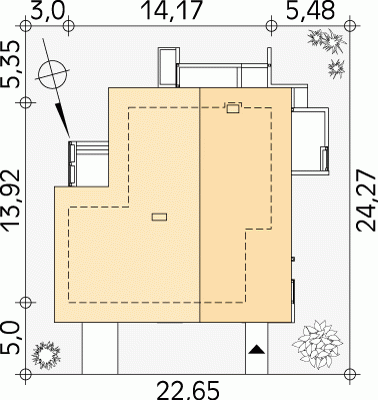Ściany: 2-warstwowe - pustak ceramiczny + styropian, Stropy: żelbetowe, wylewane, Dach: dachówka, kąt nachylenia 23°