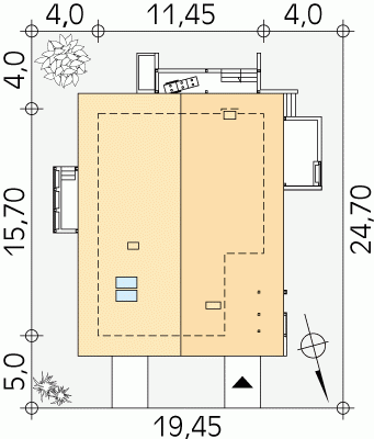 - Min. wymiary działki 19.45x24.70 m