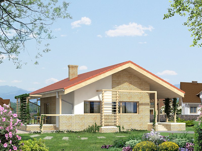 Ściany: 2-warstwowe - pustak ceramiczny + wełna mineralna ISOVER, Stropy: żelbetowe, wylewane, Dach: dachówka, kąt nachylenia 23°