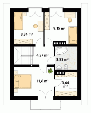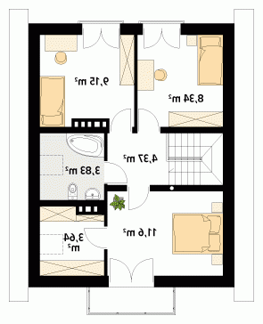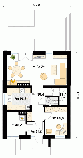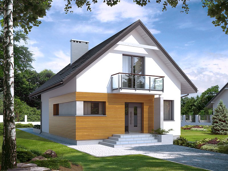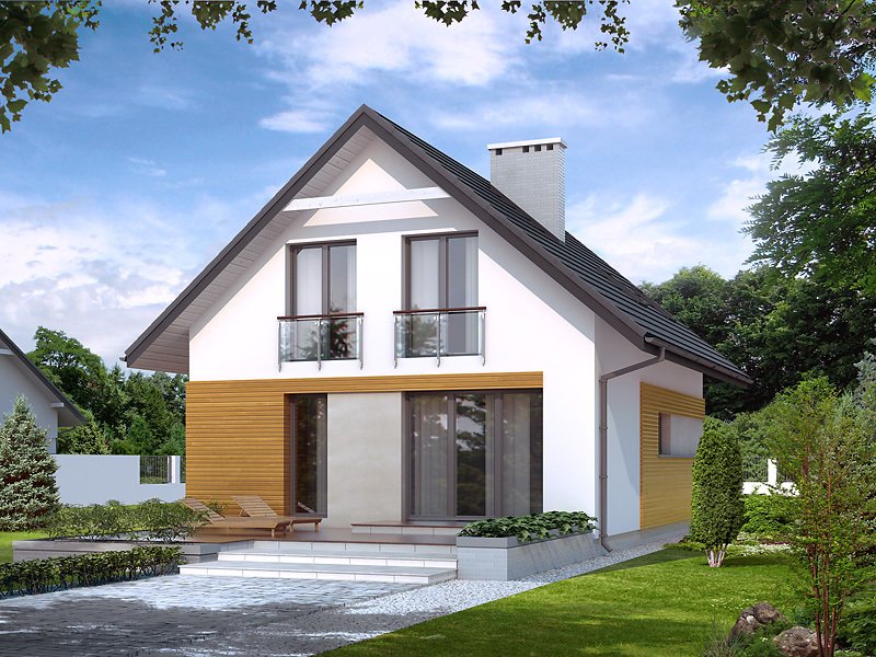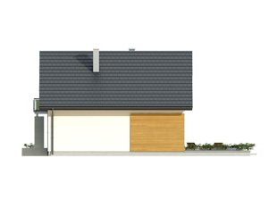 Niewielki dom parterowy z użytkowym poddaszem, przeznaczony dla 4-osobowej rodziny. Na parterze obok części dziennej i gospodarczej zaprojektowano dodatkowy pokój. Na poddaszu przewidziano trzy sypialnie, jedną z garderobą, oraz łazienkę. W projekcie przewidziano duży, przestronny taras. Całość została ujęta w prostą, klasyczną bryłę przykrytą dwuspadowym dachem. Projekt idealny na wąską działkę.