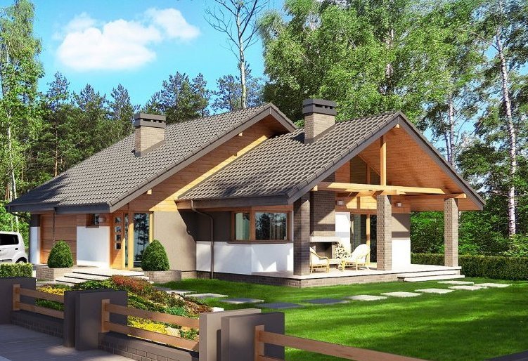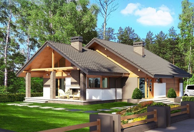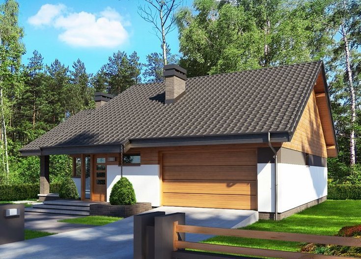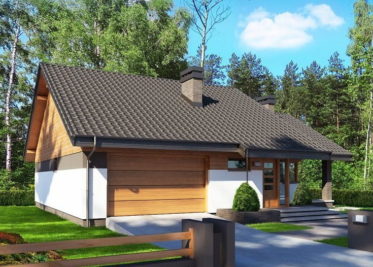 Dach: dwuspadowy o konstrukcji drewnianej, pokryty dachówką ceramiczną, cementową lub blachodachówką