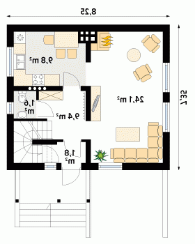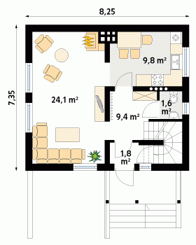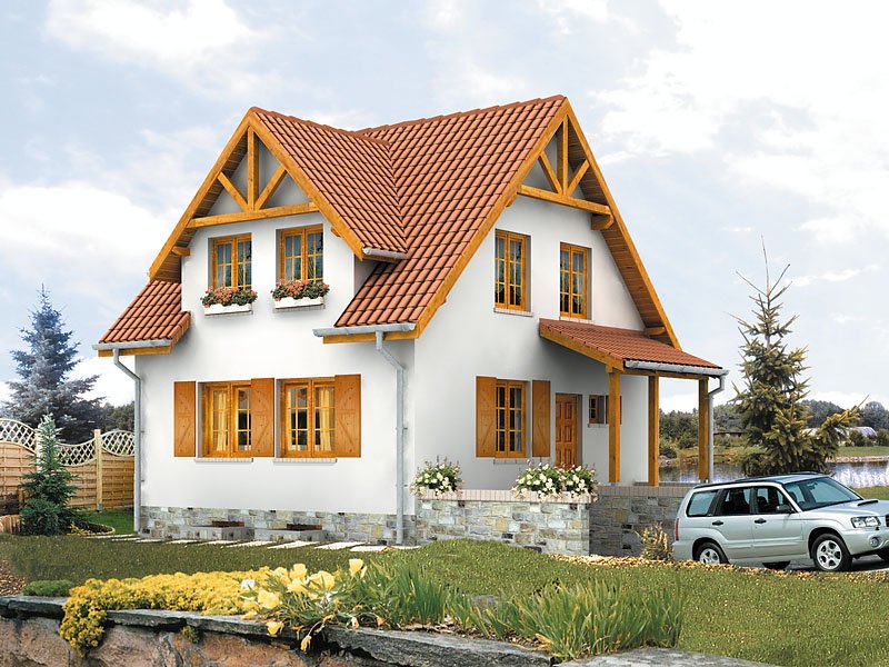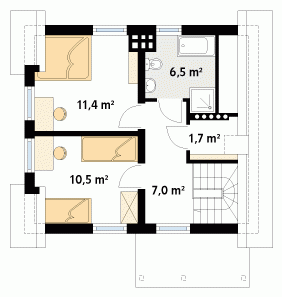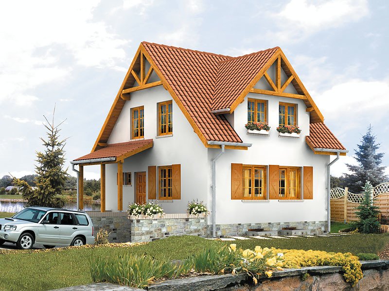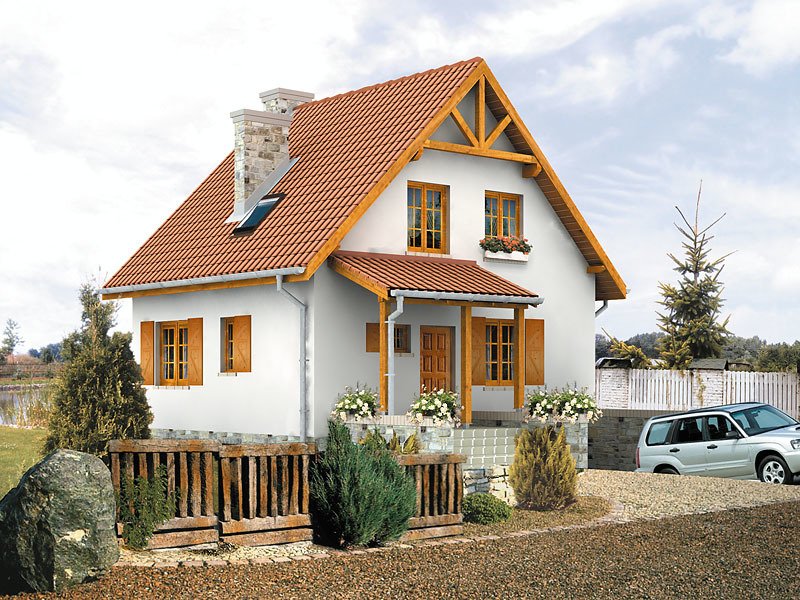 Optymalnie zaprojektowany, nieduży, parterowy domek z użytkowym poddaszem. Przestronny słoneczny pokój dzienny pozwala ustawić dom na każdej działce, niezależnie od stron świata.