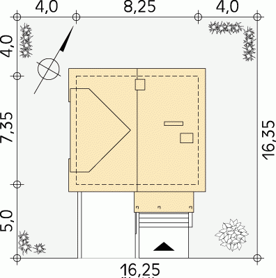 - Min. wymiary działki 16.25x16.35 m