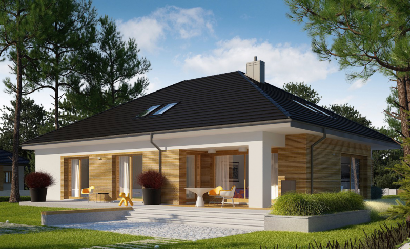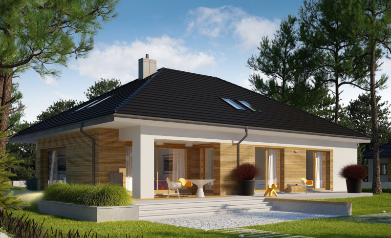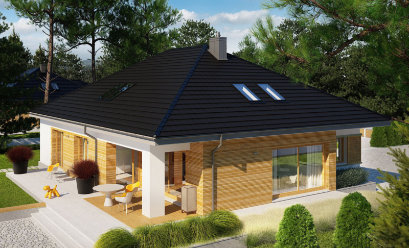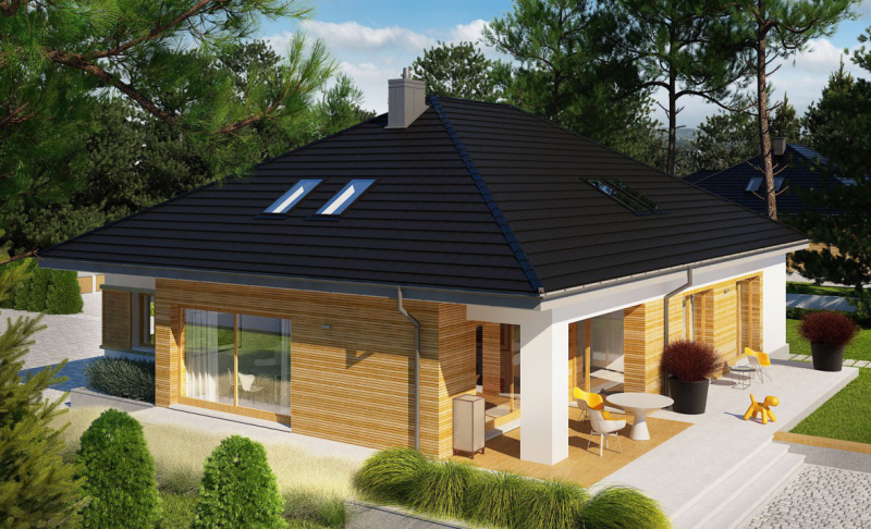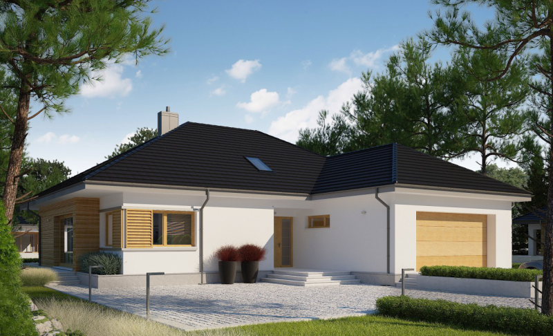 Marcel III G2 ENERGO PLUS to piękny i nowoczesny dom z dobrą energią, który zapewnia swoim mieszkańcom najwyższy komfort cieplny i użytkowy. Jego dużym atutem są szerokie przeszklenia, dzięki którym wnętrze jest optymalnie rozświetlone i przytulne. Atrakcyjną częścią projektu jest również przestronny taras, który letnią porą zamienia się w dodatkowy salon na świeżym powietrzu.
