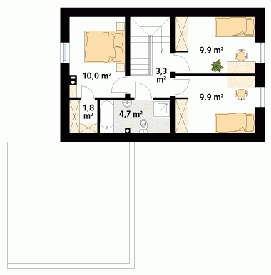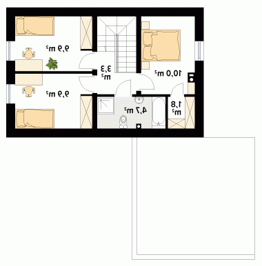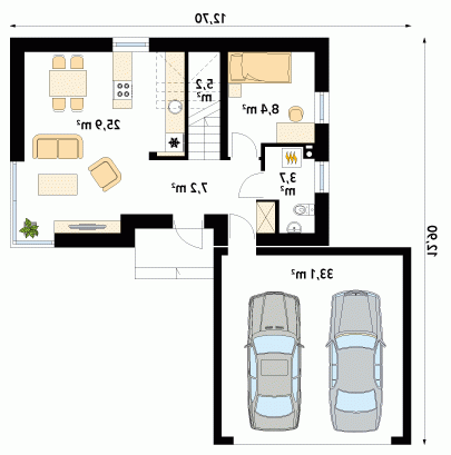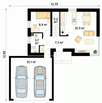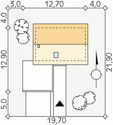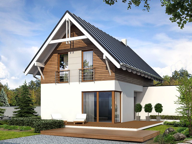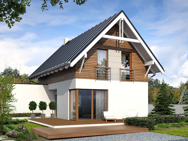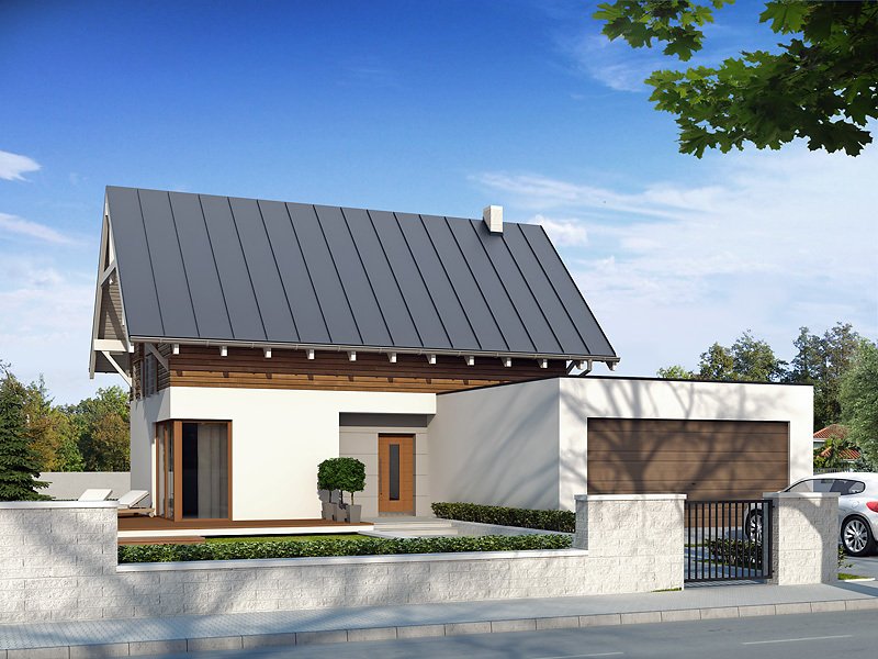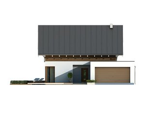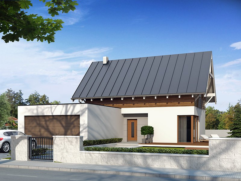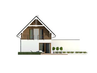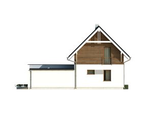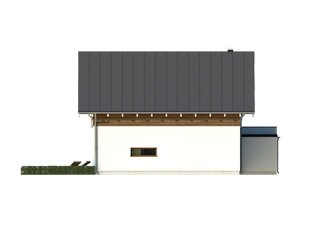 Budynek mieszkalny, jednorodzinny, parterowy z użytkowym poddaszem. Posiada układ pomieszczeń optymalny dla 4-osobowej rodziny, wzbogacony o dodatkowy pokój na parterze. Bryła budynku to archetyp domu jednorodzinnego, przykryty dwuspadowym dachem, a wykończony nowoczesnymi elewacjami. Projekt idealny na działkę z wjazdem od południa.