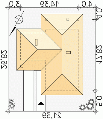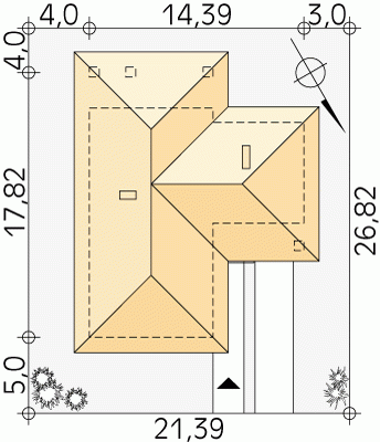 Ściany: 2-warstwowe - pustak ceramiczny + styropian, Stropy: żelbetowe, wylewane, Dach: dachówka ceramiczna, kąt nachylenia 30°