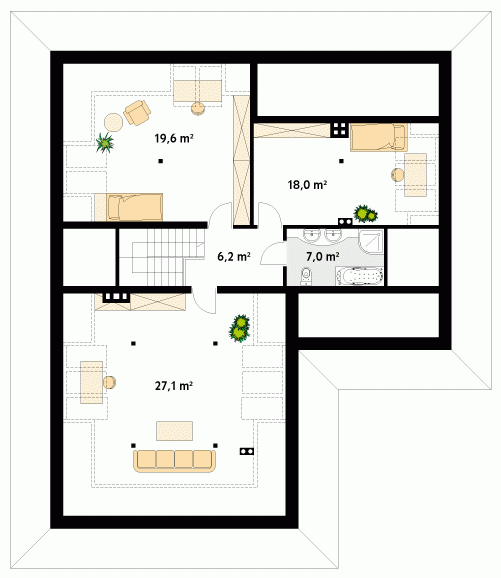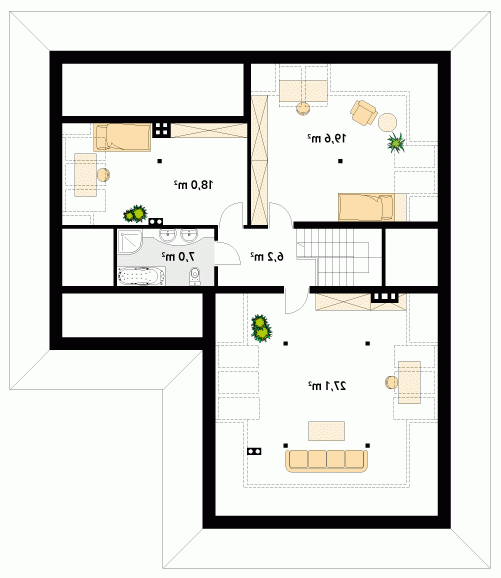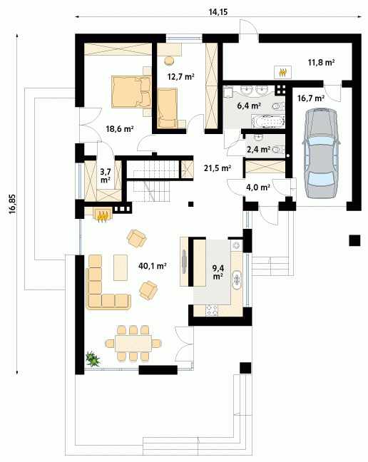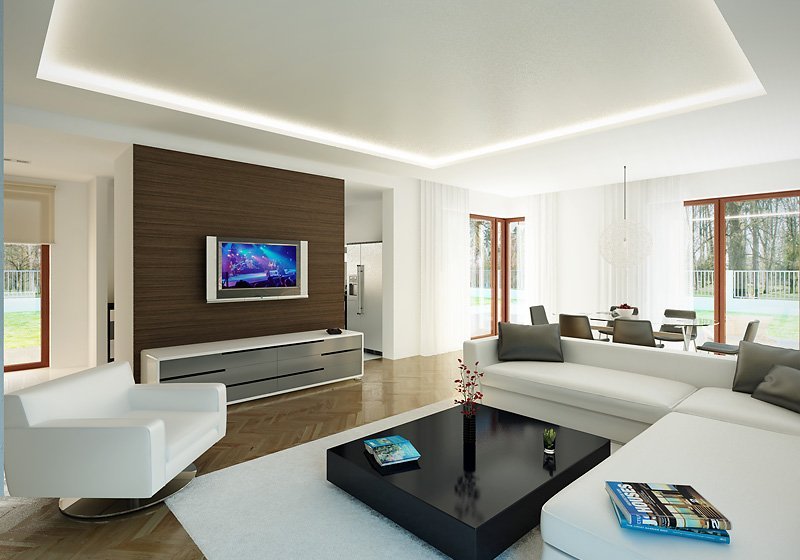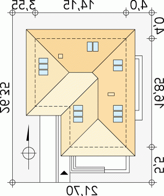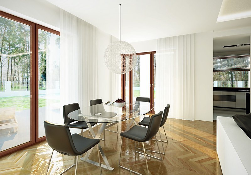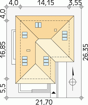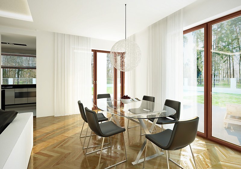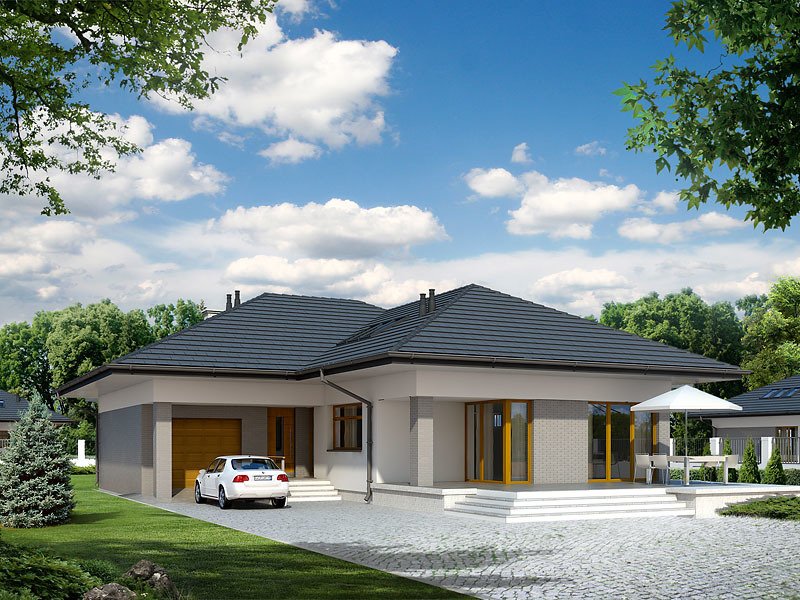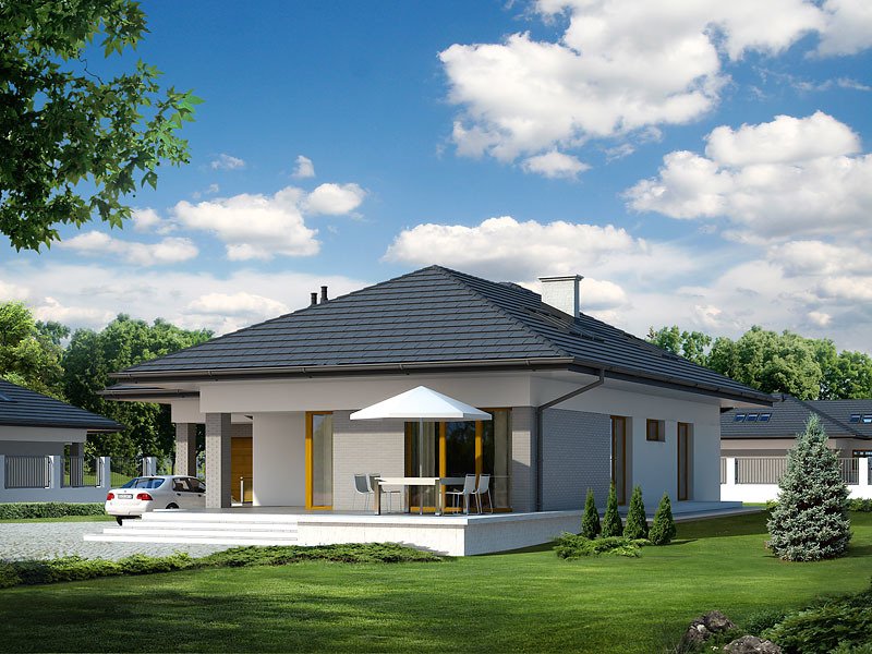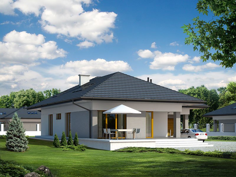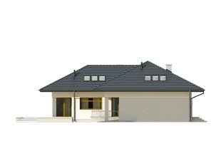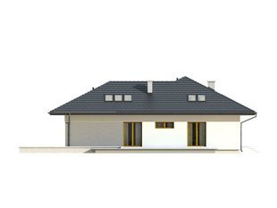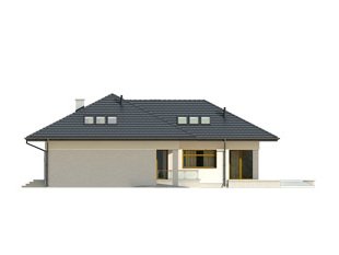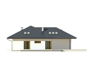 Jednorodzinny dom parterowy z użytkowym poddaszem. Przeznaczony dla 5-osobowej rodziny. Wyraźny podział na część dzienną, nocną i gospodarczą. Połączenie prostej, klasycznej bryły z nowoczesnymi elewacjami.